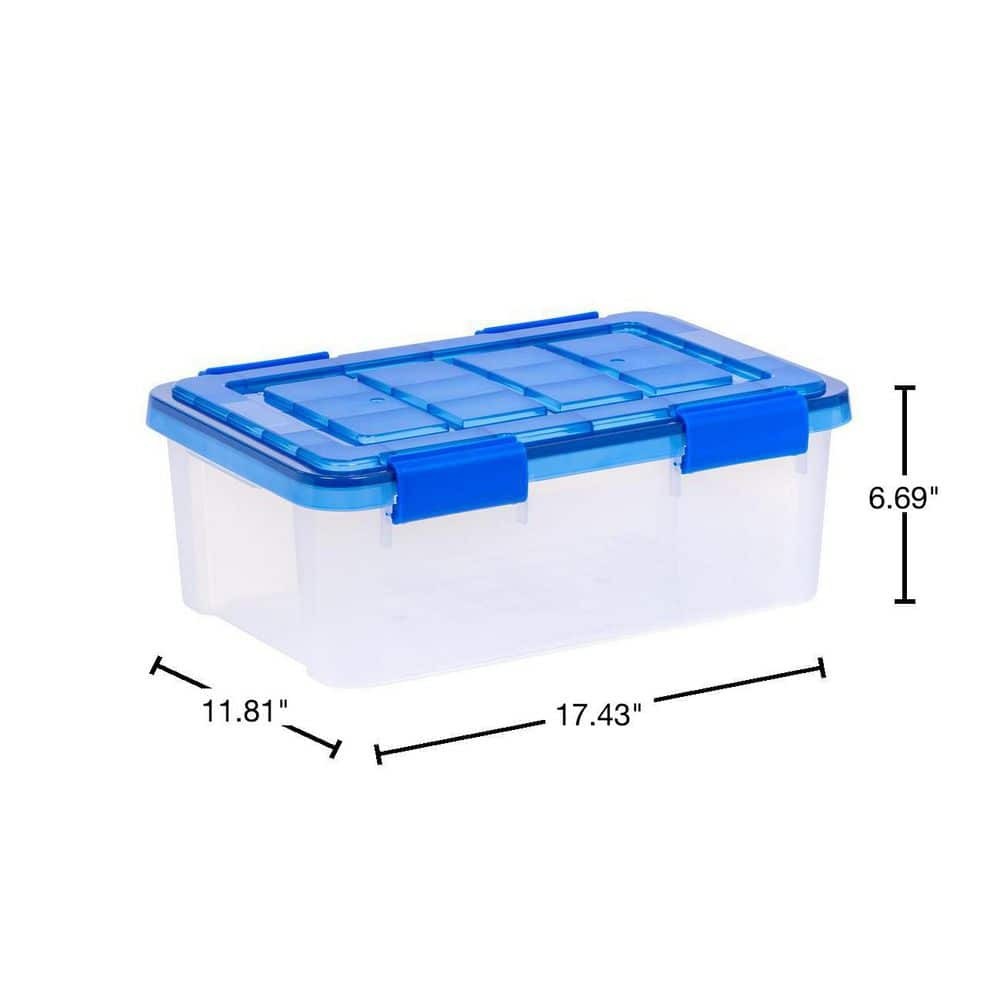 4 Gal./16 Qt. Lockable Plastic Storage Tote,Clear w/Blue Lid and Buckles(6-Pack)