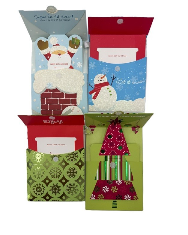4- Gift Card Holders Assorted Designs For Christmas & Holidays, As Shown