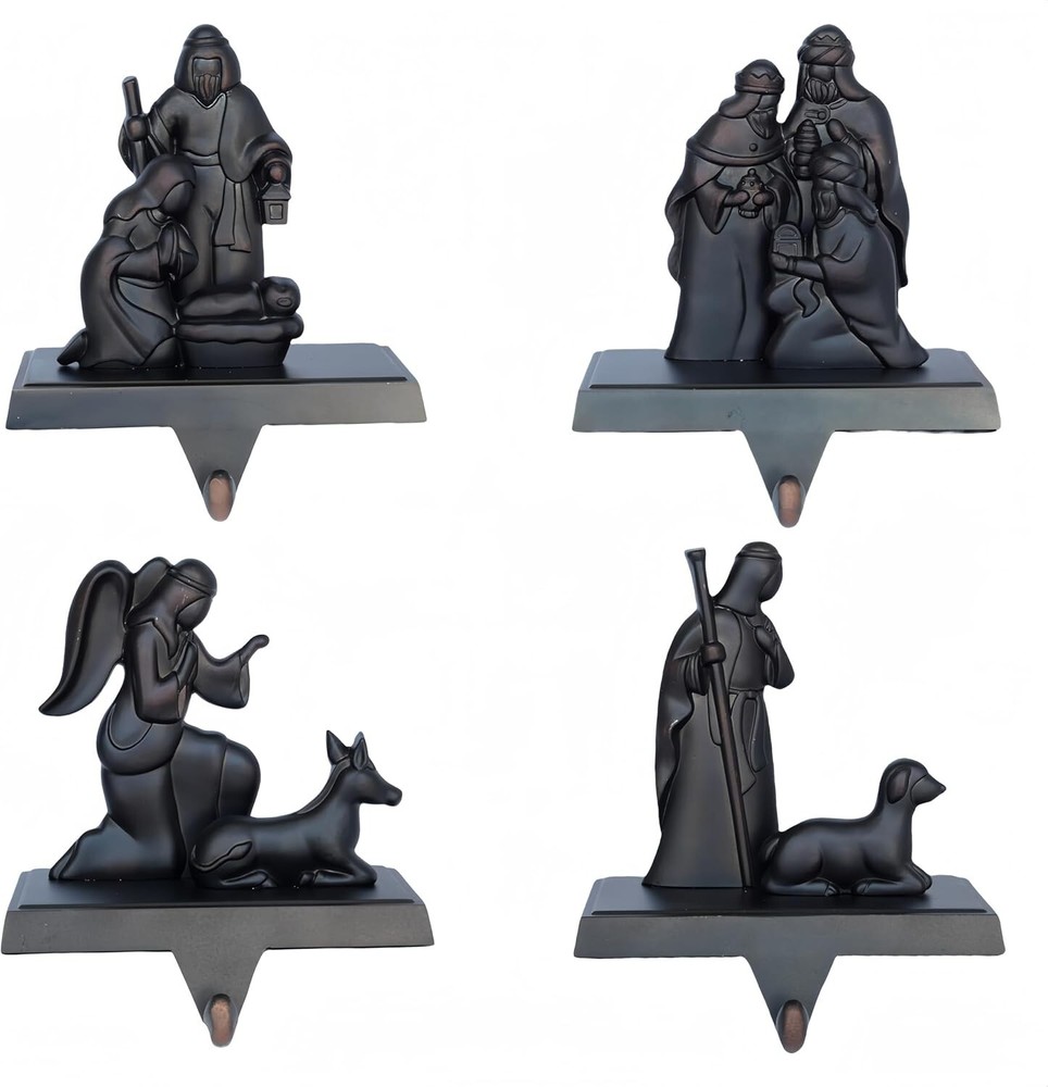 Package Includes : You will receive 4 mantel sock holders, including 4 Nativity scene ornaments, the size of the angel and the donkey is about 12.5*8.5*14cm; the size of the shepherd and the lamb is about 12.5*8.5*15cm; the size of the Virgin and Jesus is about 12.5*8.5*14.5cm; the size of the Three Kings is about 12.5*8.5*14.5cm Christmas Sock Holder : The bronze Nativity mantel is more unique and retro, and the bottom of the Christmas sock holder is covered with soft and non-slip material, which makes it not easy to slide, while protecting your desktop from scratches. With thickened hooks, you can fill more gifts in the Christmas stockings Metal Sock Holder : The Christmas sock holder is made of high-quality metal, which is durable and has a long service life. Decorating the Nativity theme mantel sock holder at home will bring you and your family more beautiful Christmas memories Christmas Decoration : Decorating the weighted mantel sock holder on the mantel, table, windowsill and shelf will bring you a richer Christmas atmosphere. Decorating Christmas stocking hangers at home will bring more different and wonderful memories to you and your family