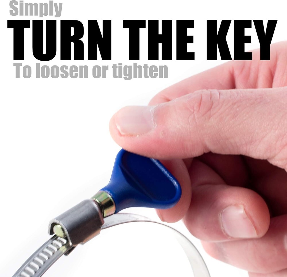 4 Inch Thumb Screw Key Adjustable 304 Stainless Steel Hose Clamps, Pipe Clamp, W NO MORE TOOLS! – Set your tools aside when installing your ductwork or hose with these handy, easy to tighten hose/duct clamps. Place the clamp where its needed then simply turn the key to loosen or tighten them. LARGE EASY TO TURN KEY - The easy to turn and easy to see blue key is made from a strong and durable polymer. The key is designed to make the securing and un-securing of hose much easier on the knuckles. No more knuckle busting flat head screw drivers or tiny socket wrenches. Simply to turn the key clockwise to tighten, counter clockwise to loosen. OFTEN USED IN THESE APPLICATIONS – These unique clamps are typically used in securing duct work, dryer vents, dust collection hoses, piping, large cable, pvc tubing and more. Ideal for use in automotive, industrial, mechanical, agriculture, boat/marine, shield, recreational vehicles, household and more. Works for both indoor or outdoor use. 304 STAINLESS STEEL HOSE CLAMP- The 4” diameter large hose duct clamp (including the housing, the band and the internal screw are made from premium 304 stainless steel. This makes the clamp strong, durable and rust resistant which makes it ideal for many applications in the shop or around the home. Shipping We offer FREE shipping on all orders! We ship within Three business days of payment, usually sooner. We use a selection of shipping services such as UPS, FedEx, USPS etc. We only ship to the lower 48 states, no APO/FPO addresses or PO Boxes allowed. Local pickups and combined shipping options are not provided at this time. Return You can return a product for up to 30 days from the date you purchased it. Any product you return must be in the same condition you received it and in the original packaging. Please keep the receipt. Customer satisfaction is very important to us. If you have any problem with your order, please contact us and we will do our best to make you satisfied. Contact Us If you have any queries, please contact us via ebay. We usually respond within 24 hours on weekdays. Please visit our eBay store to check out other items for sale! Thank you for shopping at our store.