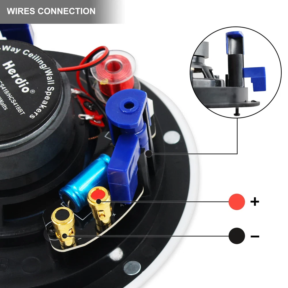 Herdio 4 Inch Bluetooth Ceiling Speakers 160W Flush Mount in Wall Amplifier Receiver Suitable for Indoor Home & Covered Outdoor Porch (Pairs) EASY TO INSTALL: Install this home audio system on any wall in the home or office .The wall mount amplifier has a universal standard wall plate size .Connected with our HCS-418 ceiling speakers and let it give you versatile sound experience that is easily accessible. MIC IN /USB /AUX-IN: It features USB flash memory reader for media playback which also doubles as charging port for your devices. AUX 3.5mm audio input jack lets you connect and stream audio from external devices, The Wall plate receiver adds convenient microphone paging ability along with sample source audio control . IN CEILING SPEAKERS FEATURES: 160WATTS MAX POWER,HCS-418 Ceiling speaker were carefully combined to reproduce sound clearly with outstanding responsiveness. The polypropylene cone with rubber edge will help extending the life of the product Ideal for custom audio applications SPEAKERS DIMENSION: Total Speaker Diameter: 6.4 Inch Cut Out Diameter: 5.7 Inches Total Speaker Depth: 2.6 Inches Mounting Depth: 2.6 Inches What's In the Box: 1x in-wall audio receiver wall plate, 1XAC adapter,2Xscrews 2X in ceiling speakers, 2 x speaker wire SHIPPING Domestic Buyers - We have confidence in our products, but if you are not fully satisfied please contact us within 30 days of purchase and you will get full refund. - We ship within 3 business days of payment, usually sooner - We offer FREE shipping on all orders! - We only ship to the lower 48 states, no APO/FPO addresses or PO Boxes allowed International buyers – please note: Import duties, taxes, and charges aren't included in the item price or postage cost. These charges are the buyer's responsibility. - Please check with your country's customs office to determine what these additional costs will be prior to bidding or buying. * Order Cancellation Policy ** You can return a product for up to 30 days from the date you purchased it. 1. The seller reserves the right to cancel the special case only due to eBay cancellation fee. 2. The decision of seller is the final. 3. The seller will respond to the cancellation request within 2 business days. Please wait for the result of cancellation. 4. In case the cancellation is not completed by some reasons, the buyer can follow the options below to get the refund. 4.1 The buyer can reject the item when it arrives. 4.2 The buyer can send the item back to the seller within 30 days If the buyer receives item (USA Shipment ONLY). The seller will provide the FREE return label to the buyer when the buyer opens " Return Item" case on eBay by using the reason as "Change my mind" ONLY. 5. When buyer has placed the order. The order will be processed and completed by automatic warehouse system within 5 minutes. In case that buyer sends the cancellation request after 5 minutes of placing the order, the request will be rejected. **Sending direct message to cancel the order is not allowed for every case.* Return Policy For the return case - If buyer would like to return the items for refund or replacement, please CONTACT SELLER to receive the free return label from seller. The refund or replacement will be processed with the tracking number of return label which is provided by seller only. The other ways of return which are not approved by seller will not be processed for the refund or replacement.