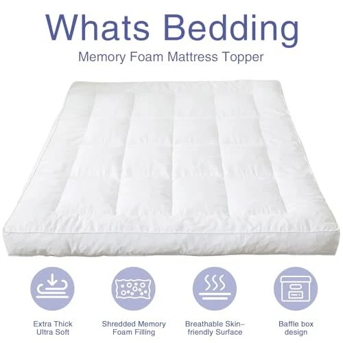 4 Inch Memory Foam Mattress Topper Size, Breathable Fluffy Queen White