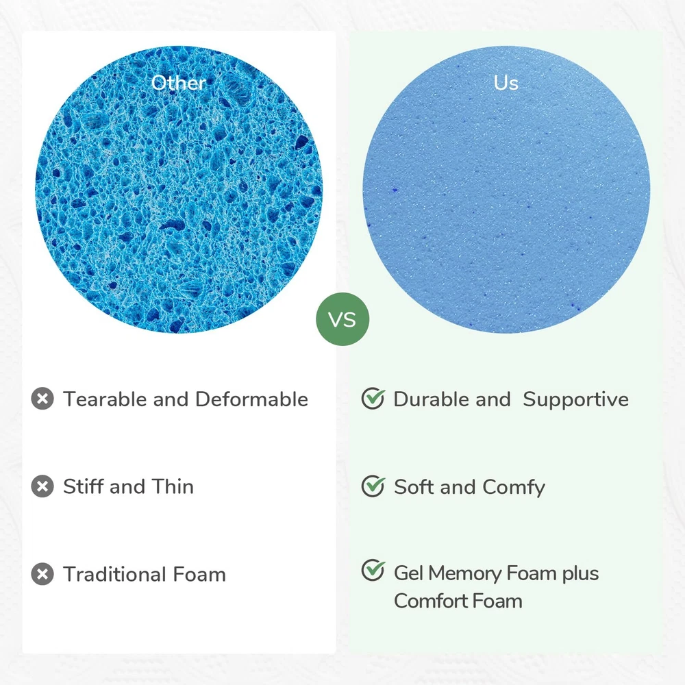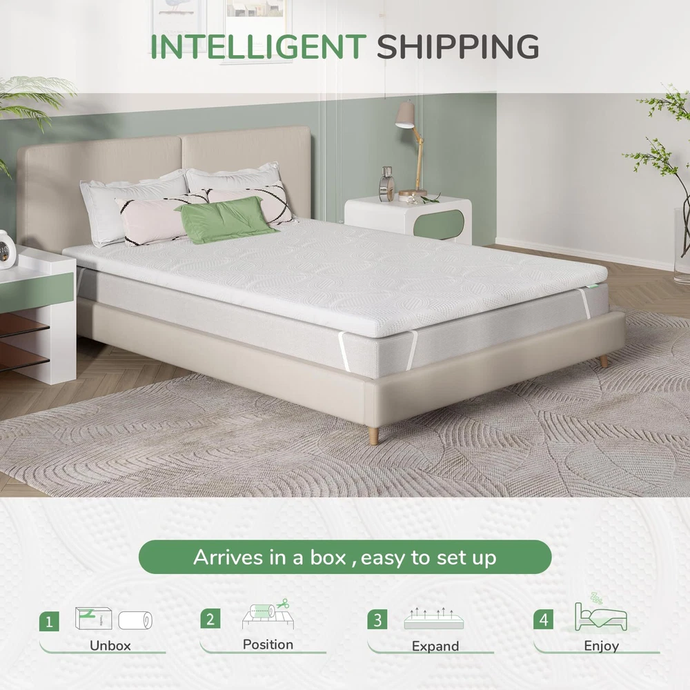Do you have trouble sleeping on a too firm or sagging mattress? Tossing and turning all night or waking up with aches is really a hassle. Don't compromise on the quality of your sleep any longer. Upgrade your sleep experience with memory foam mattress topper! What are the benefits of a memory foam mattress topper? - Embrace your body's contours and relieve pressure points, helping you stay refreshed throughout the night. - Add extra comfort to your mattress, saving it from sagging or being too firm. - Prevent your mattress from wearing out. This can extend the overall lifespan of your mattress. - Save your money of hefty expenses of constantly replacing your mattress. Available in 2-inch, 3-inch and 4-inch heights. Tips: 1. This mattress topper arrives in a box for quick and easy installation. After unboxing it, please wait 72 hours for the topper to regain its shape. 2. In order to protect the memory foam effectively and prolong its life, the cover is designed non-removable. 3. The mattress topper is potential for slight off-gassing odor after unpackaging. The smell is normal for a new product and has zero degree of hazard. Please place the mattress topper in a ventilated area and the smell will dissipate in few days. Package content: 1x Memory Foam Mattress Topper 1x Package Opener 1x Manual & Card. 【SUPPORTIVE & MOTION ISOLATION】4-inch memory foam mattress topper is made from high-density memory foam, providing excellent support for your body, relieving your back pain, and preventing your mattress from sagging. Our twin memory foam mattress topper will absorb more movement and prevent most of this motion from transferring across the surface, allowing you to enjoy undisturbed sleep even if your partner moves during the night. 【 BREATHABLE & COOLING DESIGN】 memory foam mattress topper is equipped with breathable fabric cover that enhances ventilation, while the internal foam is specially designed with airflow channels to ensure proper air circulation. The particles help regulate temperature and provide a refreshing sleep environment without the borther of unstoppting restlessness. 【SAFETY CERTIFICATE & VERSATILE USE】 The mattress topper twin is certified by CertiPUR-US and ORKO-TEX. It can be easily cleaned and maintained—simply wipe it clean for daily care. It is suitable for various settings, such as dorms, RVs, and mattresses, making it a perfect addition to any bed, whether it's for enhancing the comfort of your own mattress or adding an extra layer of cushioning to a guest bed. 【STAY PUT DESIGN】 Equipped with adjustable elastic straps to fit around the corners of your mattress and anti-slip rubber particles on the bottom to prevent excessive shifting, our twin memory foam mattress topper stays securely in place throughout the night and fits snugly on your mattress. No more waking up to find your topper has shifted or bunched up! 【WORRY-FREE PURCHASE & TIPS】 provides a 30-day money-back return policy and a 3-year for the memory foam mattress topper. Please allow 48-72 hours for the topper to fully expand before use. Feel free to 's Customer Support Team if you are not satisfied with the product or have any questions.