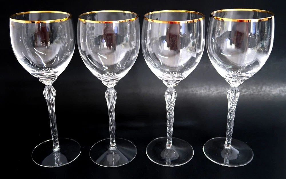 4 LENOX MONROE Water Goblets Glasses 8 1/2" Tall LOT Crystal Stemware Gold Trim This eBay listing is for a lovely lot of 4 matching crystal Lenox Water Goblets glasses that comes as you see pictured in the listing and noted above. The pattern is called Monroe with the gold trim at the top. All of the glasses are in excellent condition with no chips, flea bites or repairs that I can see or feel. The gold trim shows little to no wear so these glasses saw very little use, if any at all!! The overall size is 8 1/2" tall and it measures 3" across to top. All are marked with the Lenox name etched into the bottoms of each glass. Replacements sells these for $45.99 each on their site. I'll also have a few other lots of this pattern listed in my ebay store at this time as well. Seller Location Reference - Box 402 BID IN CONFIDENCE – CHECK MY FEEDBACK! My goal is your satisfaction. I leave positive feedback right after the payment is received for all orders!! If you plan to leave anything less than positive feedback and 5 stars - please let me know so that I can work out any problems that you may have. I aim to please!! SHIPPING & HANDLING FOR US BIDDERS We ship ASAP upon payment as noted above within 1 business day 99% of the time!! We normally pack up your new treasures 2 - 3 times a day and ship using USPS and Fedex Ground so that you get your items in a timely fashion. As always - there is no charge for local pickup on any of my items!! SHIPPING AND HANDLING FOR INTERNATIONAL BIDDERS Import duties, taxes and charges are not included in the item price or shipping charges. These charges are the buyer’s responsibility. Please check with your country’s customs office to determine what these additional costs will be prior to bidding/buying.” THANK YOU AND HAVE A WONDERFUL DAY!! Powered by SixBit's eCommerce Solution