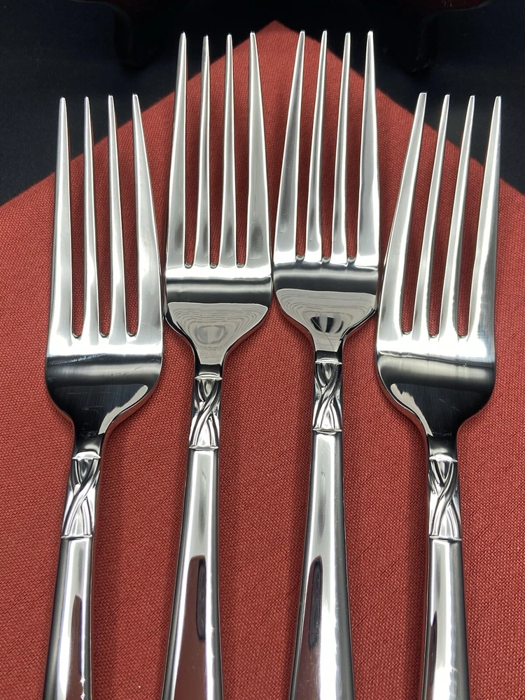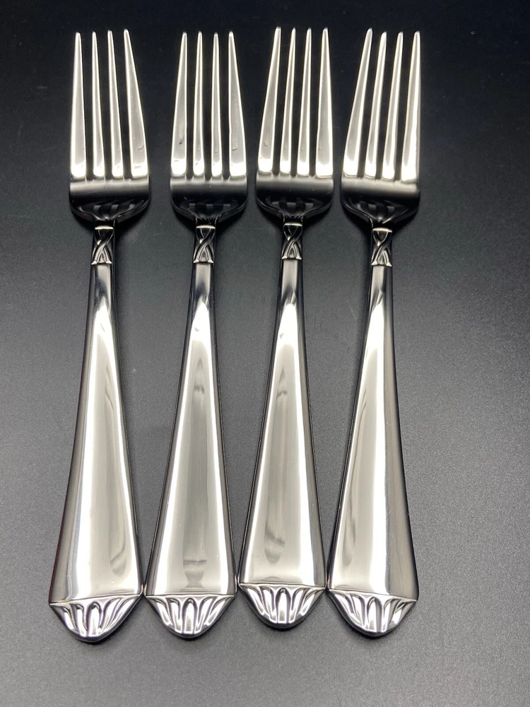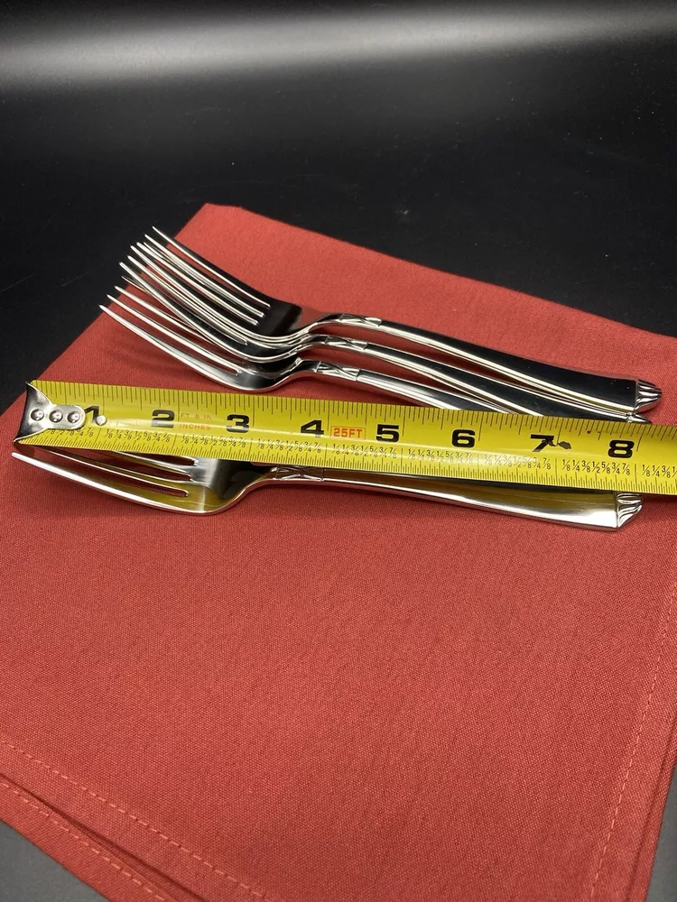 The listing is for 4 (four) Lenox British Colonial Stainless Dinner forks each measures approximately 8-1/8 inches long. New and unused from my own personal stock 17 years ago. They are all in excellent condition. The dinner forks weigh approximately 8 ounces without packaging material. Will package with great care and thank you kindly for your consideration. REASONABLE SHIPPING: Calculated shipping: Weight and distance based shipping via USPS Ground Advantage domestically USA from South Florida. USPS Ground Advantage is lowest shipping cost. Estimated delivery of 2-8 business days. Shipping costs is based on item(s) weight including packaging materials and the distance from the seller’s zip code to the buyer’s zip code. Buyers whose shipping address/zip code is in the East coast of USA tend to have higher shipping costs as distant is longer from seller’s South Florida zip code. Ships globally via Ebay International Shipping Delivery.