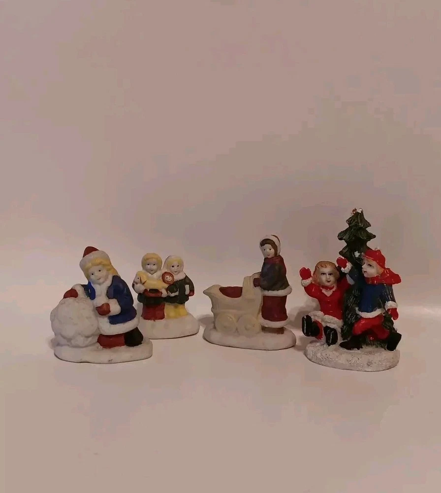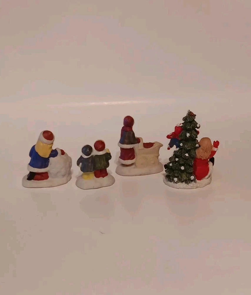 Add a touch of charm to your Christmas decor with these four miniature ceramic figurines. Crafted in China, these figurines are perfect for adding a festive touch to your holiday decor. Each figurine is painted with intricate details and is sure to become a treasured part of your collection. So why wait, add them to your collection today and enjoy their beauty for years to come! This is a pre-owned item with normal wear. See Pictures