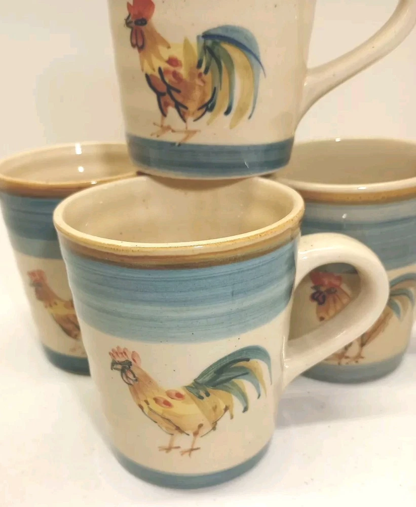Enjoy your coffee or tea in style with this 4-piece mug set from Everyday Gibson. Featuring a charming Ocean Dream Rooster pattern, these stoneware mugs are perfect for all occasions. With a capacity of 10 fl oz and a height of 4.25 inches, they are ideal for your daily beverage routine. The set includes four coffee mugs that are microwave and dishwasher safe. They are perfect for a garden-themed brunch, a beach party, or a farmhouse-style kitchen. The mugs are designed with a country style and come in a multicolor Ocean Dream Rooster pattern. Sip your coffee or tea in style with these elegant mugs from Everyday Gibson.