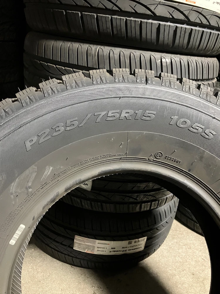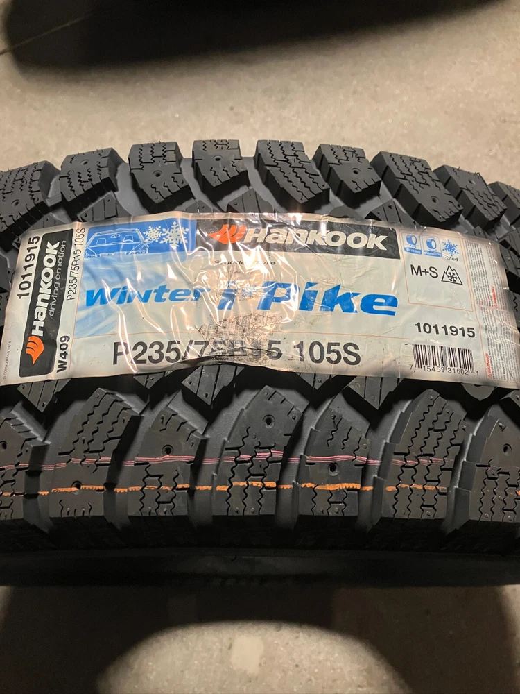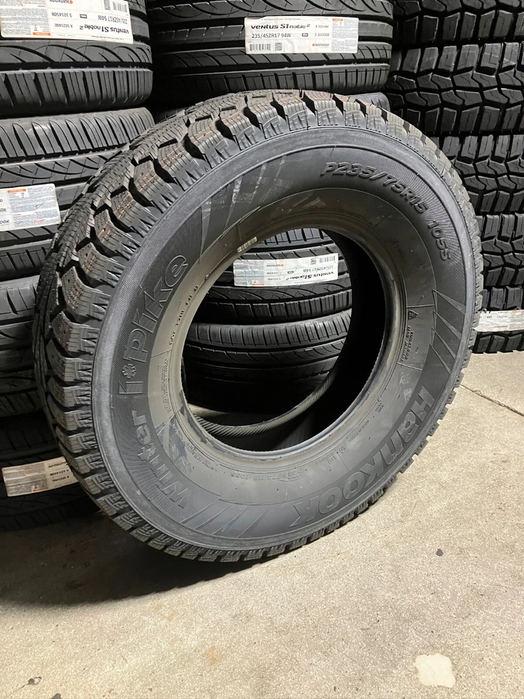 Four (4) New P235/75 R15 105S Hankook Winter i*Pike Snow Tires These are not LT tires. If your vehicle requires LT tires, these are not the correct application. Free Shipping These tires are new, not blems, and have never been mounted. Please check fitment before you bid, and e-mail with any questions. These tires are 2017 production. If this concerns you at all, please do not purchase these tires. We do not accept returns based on the age of tires. By making a purchase, the buyer agrees to the production year listed in the item description. 1x = 4 tires Free shipping for 4 tires and in the 48 Continental US States Only!