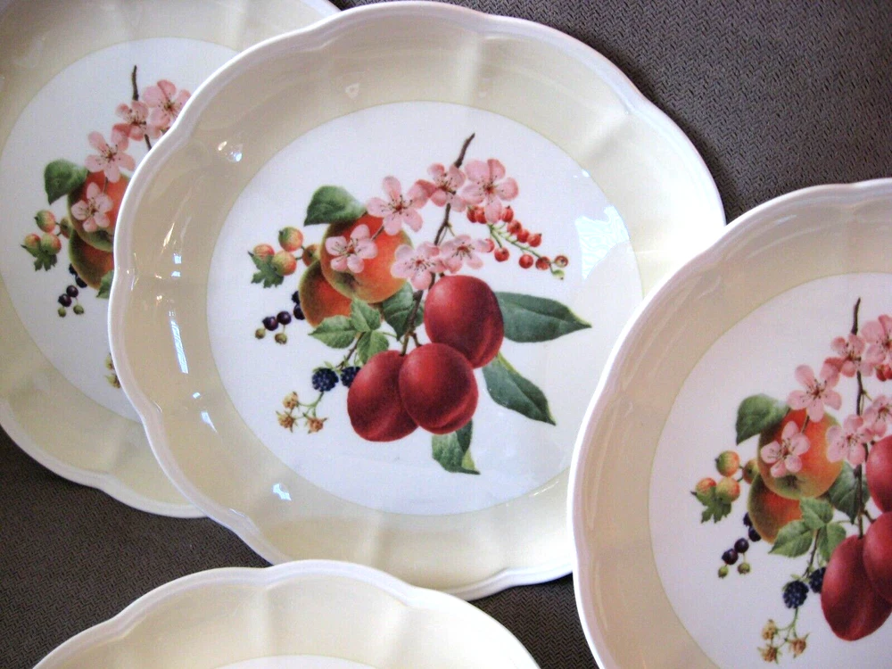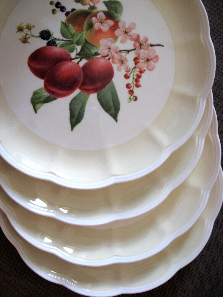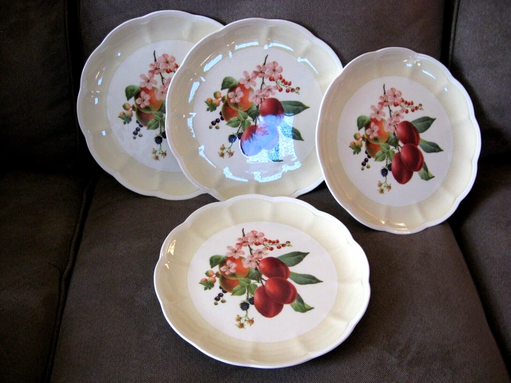 Many thanks for checking.............. FOUR dinner plates in excellent pre owned condition with no damage. 10 7/8" across - weigh 1lb 7 oz each before packaging. Can combine shipping if requested. Microwave, dishwasher and oven safe Questions - just ask