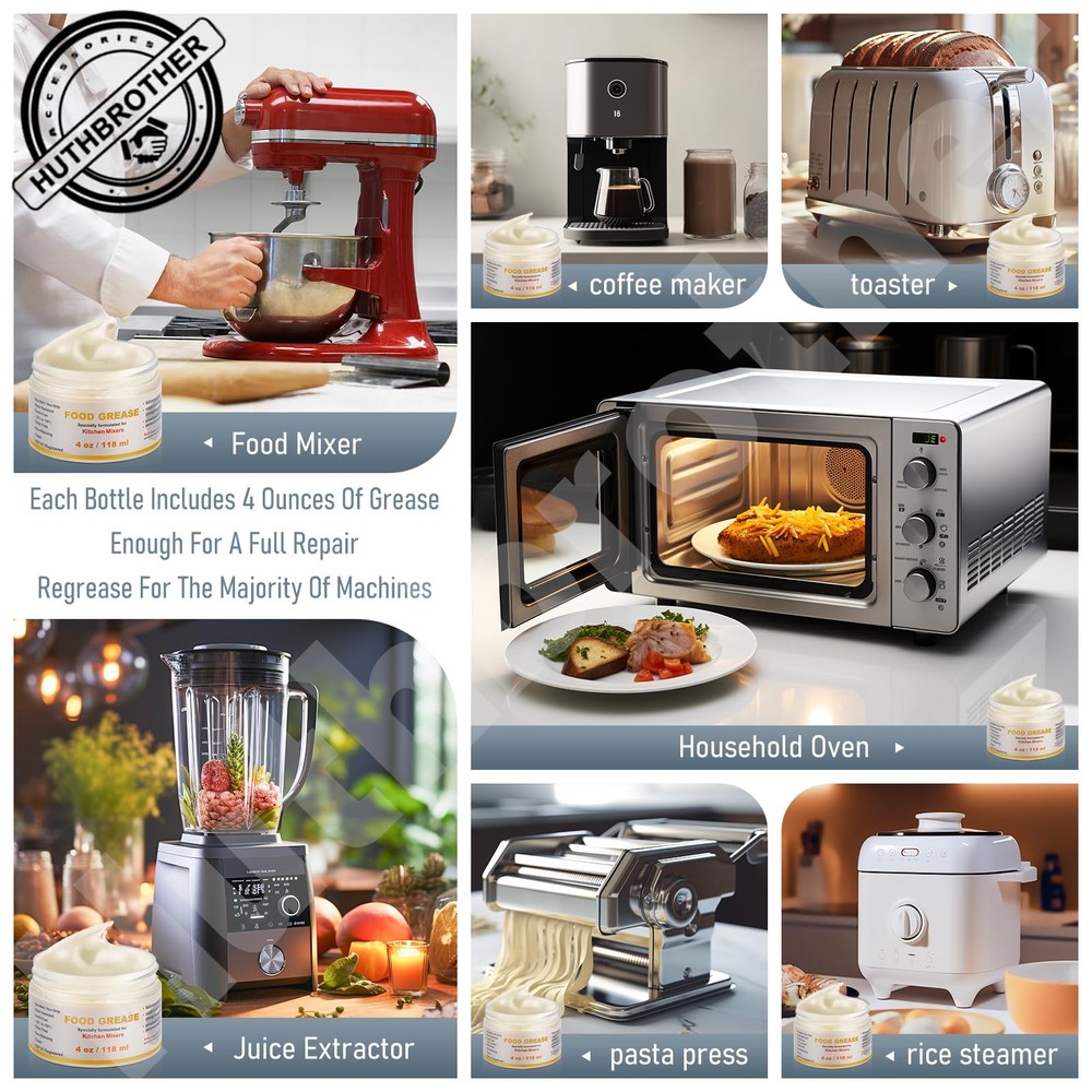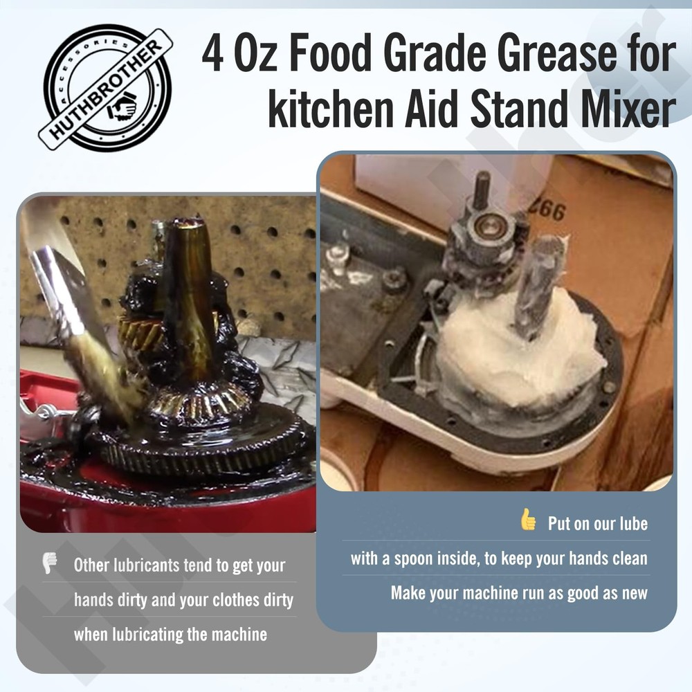 π 9709511 Gasket Part Numbers: AP4326018, 1426121, AH1488426, EA1488426, PS1488426, 9709511, AP6013805, PS11747032 π Fits Various Brands: Our food-grade grease is compatible with various brands to aid you mixer running smoothly at the best level of performance. Please check your model number with the product to make sure this fits. π Reduces wear on your mixer and prolong its life of use: mixers require regular regreasing to maintain its smooth operation. The grease will wear down gradually with the time of running. Do not let the grease leak out and damage your mixer until it is too late. π Food-grade and NSF-H1 accredited: our grease is proudly NSF-H1 accredited. It is safe for incidental food contact and can be used in food processing equipment. π Trustable quality at a budget price: This is a high-quality and food safe grease. Regreasing is simple and quick and will help you save unnecessary cost.Each Bottle Includes 4 Ounces Of Grease, Enough For A Full Repair / Regrease For The Majority Of Machines π This kit includes 1* 4 Oz food-grade grease tube, 1*9709511 gasket
