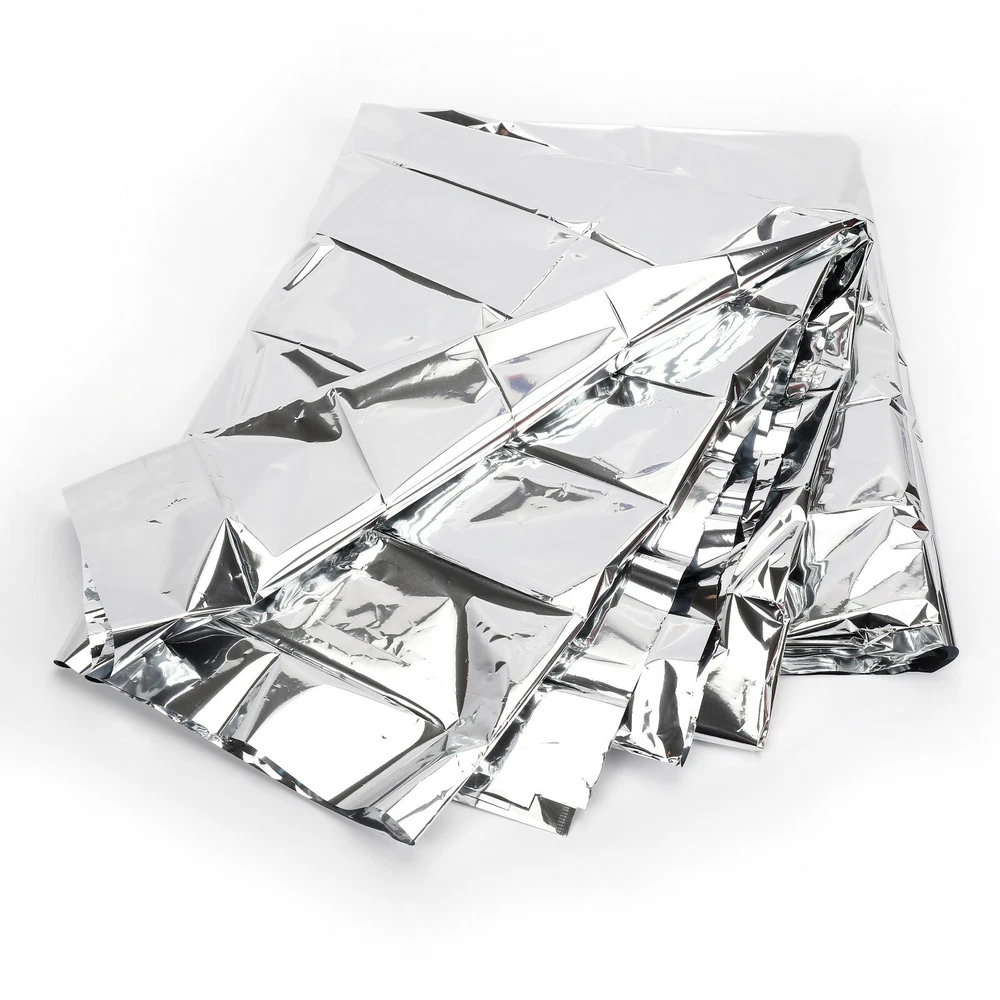 4-pack of lightweight emergency blankets 84" x 52" silver mylar thermal reflective These are NEW sealed in individual packaging Free shipping via USPS
