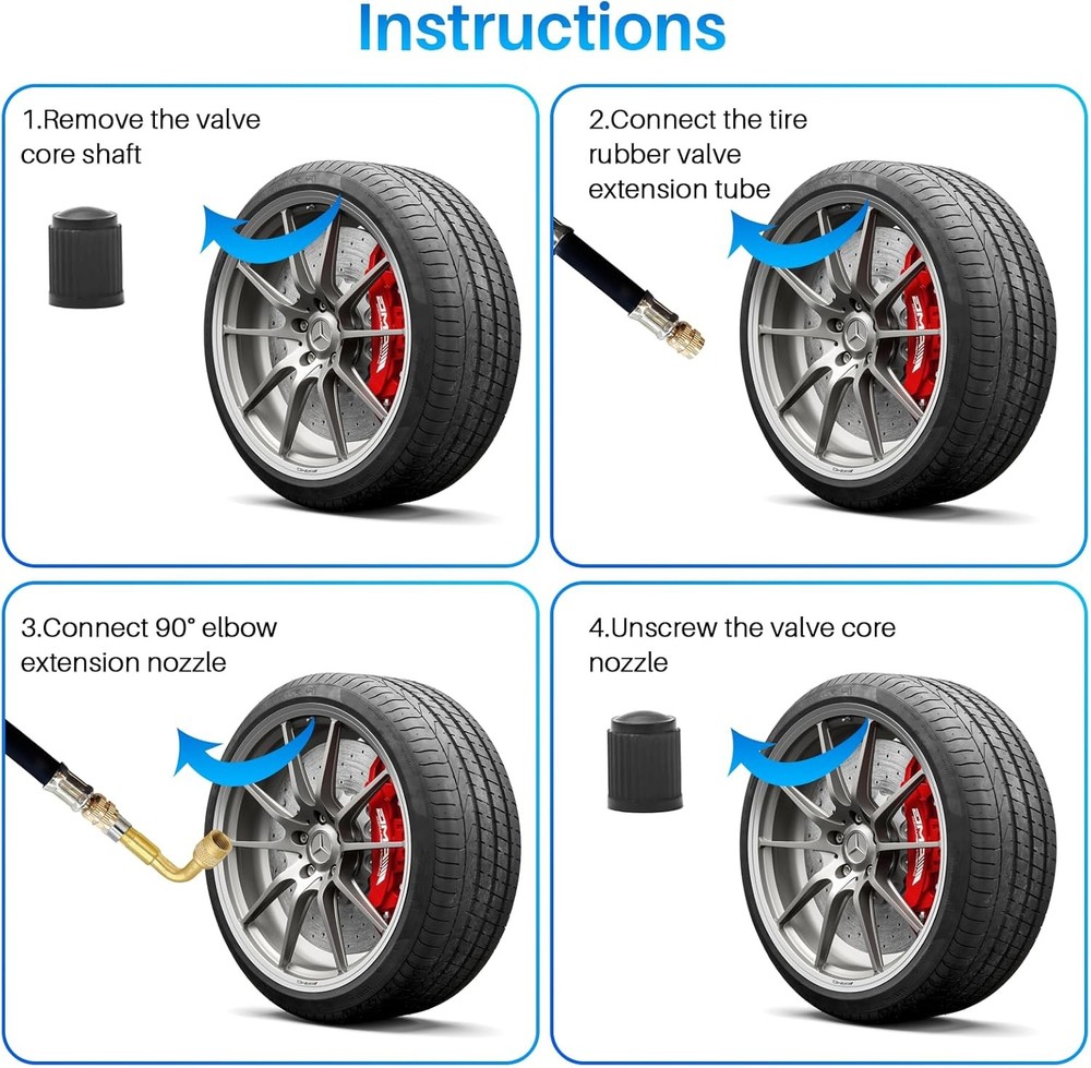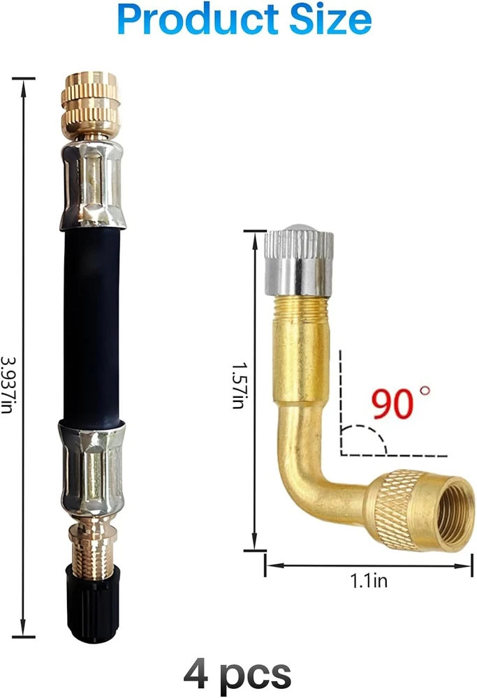 4 PCS 90 Degree Tire Valve Extender, Comes with 4 Tire Rubber Valve Extension Tu