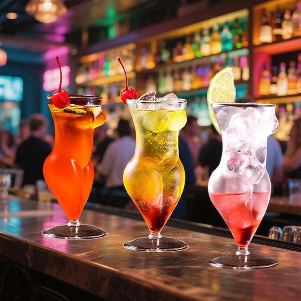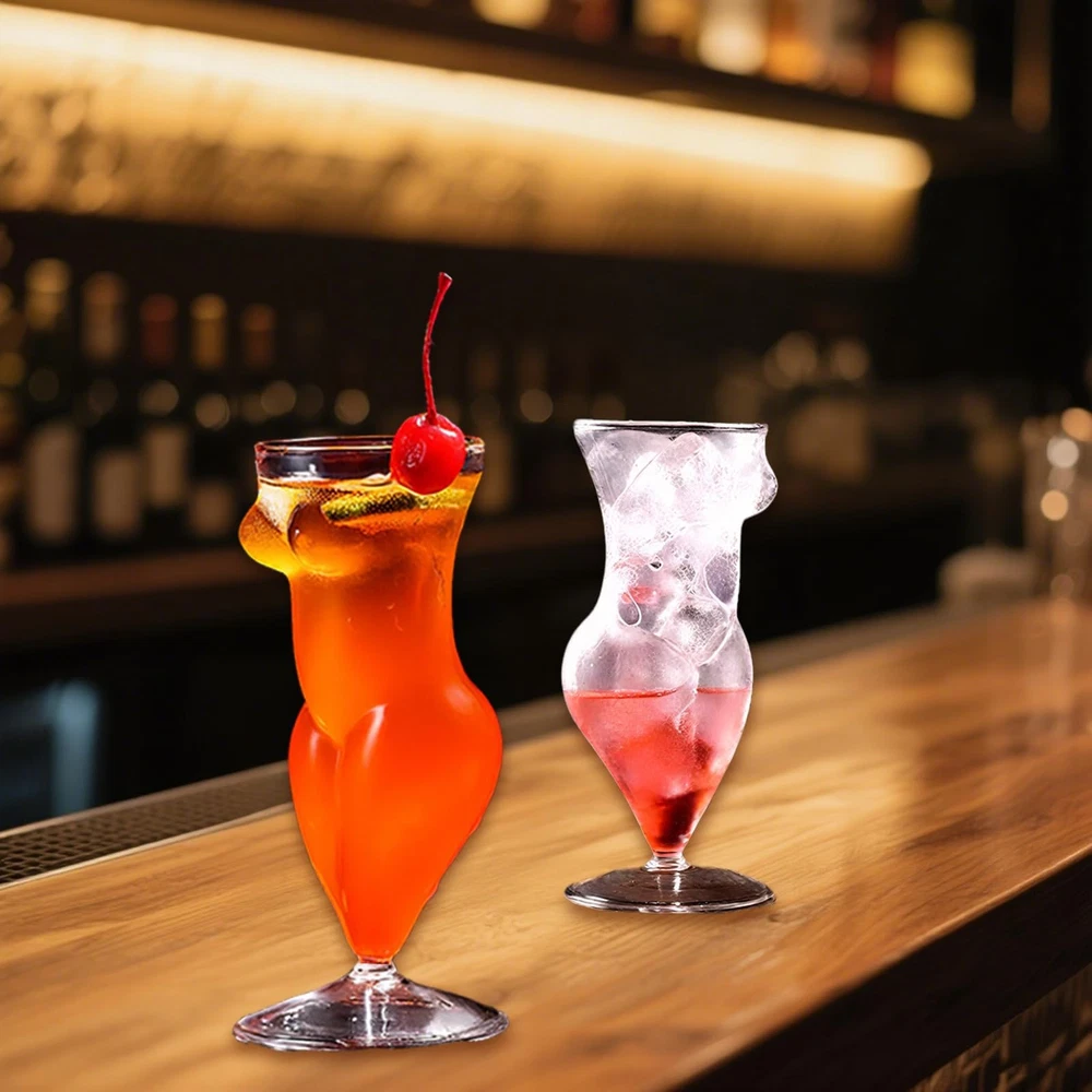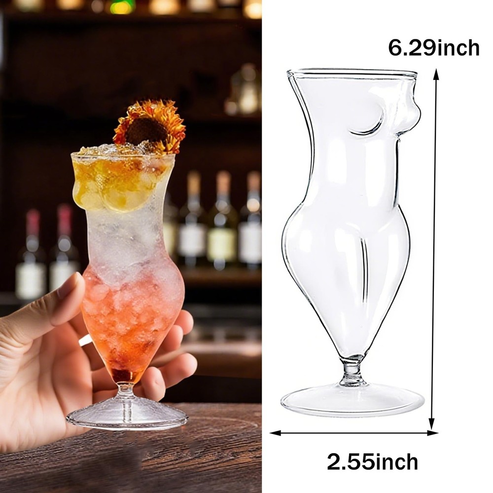 Glass highball glasses in the shape of a unique cocktail glass modeled after the special shape of the human body. The marvelous clear glasses will surprise you when used at parties, homes, bars, clubs, restaurants, hotels and more. Color: Clear Material:High borosilicate Style: Modern Capacity: 501-600ml Shape: Body Shaped Number of Items: 4 Item Weight: 1.91 pounds HIGH QUALITY: Skilled artisans use a unique human-shaped wine glass made of high-quality, thickened glass material for superb clarity, durability and versatility. Interesting 3D humanoid shaped glass stemmed wine glass is used in the shape of the glass. Your imagine how cool it is to have this beautiful cool cocktail glasses while drinking cocktails. MULTIPURPOSE: The crystal wine glass body is sexy girl shape appearance is very cool and charming. The nude wine glasses unique body structure design is suitable for serving white wine, red wine, sparkling wine and rose wine. The body wine glass are not only for serving drinks, but also a beautiful decoration for all kinds of banquet tables. EXCELLENT APPEARANCE: The human shaped champagne flutes are carefully designed unique crystal wine glasses have a wide diameter mouth and a curved body in the shape of the human body's soft waist, designed to open up the aroma of the wine and make it more aromatic. White wine glasses are suitable for drinking and celebrating at Christmas, Halloween, Thanksgiving, weddings, weekends, holidays, birthdays. APPLICABLE SCENE:Bachelor party wine glasses are suitable for bars, restaurants, homes, cocktail parties, clubs, wedding banquets and so on. Unique female body design, cool and eye-catching. Wine gifts are always a big hit, and this set of 4 creative cocktail glasses is a great gift for your friends, family and others on any occasion; it brings more fun for you and your guests. This fun wine glass is perfect for serving wine, whiskey or other beverages. EASY TO CLEAN: The goblet is well made and feels comfortable in your hand. You can drink it directly or with a straw, which is both convenient and elegant. sexy glasses set are ultra-thin and chip-resistant is its biggest advantage, dishwasher safe. They wine glasses retain their beautiful shine and clarity after dishwasher cleaning.