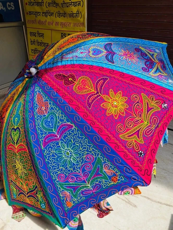 The buyer can choose any combinaton of umbrella, can pick same umbrella or different umbrella if buying more than one, feel free to contact PLEASE This is a Multicolored Hand Embroidered Garden Umbrella. A suitable Parasol to fill up your Garden with Colors, also used for Decoration purpose in Weddings, Events and in Patios. ๐๐๐๐๐๐ ๐ ๐๐๐ ๐ ๐๐๐ ๐๐ ๐๐๐๐๐๐๐ ๐๐ ๐๐๐ ๐๐๐๐ ๐๐๐๐๐๐๐๐๐ ๐๐๐๐ ๐๐๐ ๐๐๐๐๐ ๐๐ ๐๐๐ ๐๐๐๐๐๐๐, ๐๐ ๐๐๐๐๐ ๐๐๐๐๐๐ ๐ ๐๐๐๐๐, ๐'๐กรฉ๐ฌ๐ข๐ญ๐๐ณ ๐ฉ๐๐ฌ ร ๐ง๐จ๐ฎ๐ฌ ๐๐จ๐ง๐ญ๐๐๐ญ๐๐ซ ร ๐ญ๐จ๐ฎ๐ญ ๐ฆ๐จ๐ฆ๐๐ง๐ญ ๐๐จ๐ง๐๐๐ซ๐ง๐๐ง๐ญ ๐ฅ๐ ๐ญ๐๐ข๐ฅ๐ฅ๐ ๐๐ญ ๐ฅ๐ ๐ฉ๐ซ๐ข๐ฑ ๐๐ ๐ฅ๐ ๐ฉ๐๐ง๐ญ๐จ๐ฎ๐๐ฅ๐, ๐ง๐จ๐ฎ๐ฌ ๐ซรฉ๐ฉ๐จ๐ง๐๐จ๐ง๐ฌ ๐๐๐ง๐ฌ ๐ฅ๐๐ฌ ๐ ๐ก๐๐ฎ๐ซ๐๐ฌ. ๐๐๐ ๐๐๐๐๐๐๐ ๐ ๐๐๐๐๐๐๐๐๐๐๐ ๐๐ ๐๐๐๐๐๐๐๐๐ ๐๐๐๐๐๐๐ ๐๐๐ ๐๐๐๐๐๐ ๐๐๐๐๐๐๐๐ ๐๐ ๐๐๐๐๐๐ ๐ ๐๐ ๐๐๐๐๐๐ ๐๐๐๐๐ ๐๐๐๐๐๐ ๐๐๐, ๐๐๐๐๐๐๐๐๐๐๐ ๐๐๐๐๐ ๐ ๐๐๐, ๐๐ข๐ญ๐ญ๐ ๐ค๐จ๐ง๐ญ๐๐ค๐ญ๐ข๐๐ซ๐๐ง ๐๐ข๐ ๐ฎ๐ง๐ฌ ๐ฃ๐๐๐๐ซ๐ณ๐๐ข๐ญ ๐๐๐ณรผ๐ ๐ฅ๐ข๐๐ก ๐๐๐ซ ๐๐ซรถร๐ ๐ฎ๐ง๐ ๐๐๐ฌ ๐๐ซ๐๐ข๐ฌ๐๐ฌ ๐๐๐ฌ ๐๐ฅ๐ข๐ฉ๐ฉ๐๐ซ๐ฌ. ๐๐ข๐ซ ๐๐ง๐ญ๐ฐ๐จ๐ซ๐ญ๐๐ง ๐ข๐ง๐ง๐๐ซ๐ก๐๐ฅ๐ ๐ฏ๐จ๐ง ๐ ๐๐ญ๐ฎ๐ง๐๐๐ง. ๐๐๐๐ ๐๐ ๐๐๐๐ ๐๐ ๐๐๐ ๐๐๐ ๐๐๐๐๐๐ ๐๐๐๐๐๐๐ ๐๐๐ ๐๐๐ ๐๐ ๐๐ ๐๐๐๐๐ ๐๐๐๐ ๐๐ ๐๐๐๐๐๐๐ ๐๐ ๐๐๐๐๐ ๐๐๐ ๐๐ ๐๐๐๐๐๐๐, ๐๐๐ ๐๐๐๐๐๐๐๐๐๐ ๐๐๐๐๐๐ ๐ ๐๐๐, Diametric Size: 72 Inches Color: Multicolor Height: 90" approx. with Pole (The Pole is in Two Parts one is 45" approx. and another one is 45" inches approx. and they Joined together for height adjustment) Material: Cotton Fabric, Metal Frame, Thread, Embroidery, Sequins like Mirror and love :) Usage: For Wedding, Beach, Housewarming, Pool, Garden, Cafe, Bar, Boho Decor or any other Event and Party supplies, you can also use it as Patio, Deck or Lawn Sunshade Parasol Umbrella to make your space look more Beautiful. Packaging: Box Package contains 1 Pc Large Umbrella, Fold-able Part to stand Outer Fabric Material: 100% Cotton Fabric. Work: Handcrafted Thread Embroidery & Sequence Work like Mirror. This Indian Handmade Jaipuri Embroidery Work Umbrella Bored with the regular Multicolor umbrella! This Ethnic Handmade umbrella made up of cotton cloth is essential for the approaching summer season. Prepared by traditional artisans. of Jaipur the exclusive design is decorated with the sparkling beads work on the top of the umbrella and finished with Aari tari lace and Sitara or beads work