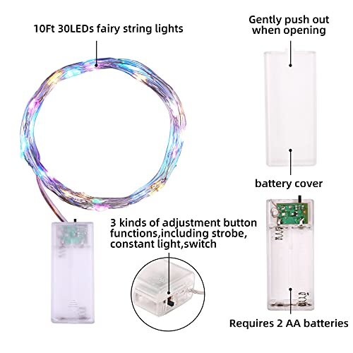 Return Policy Fast Delivery Trusted seller 4 Pack Fairy Lights Battery Operated, String Lights 10ft 30 LEDs, Flashing and Constant Light Mode, Silver Wire Mini Lights for Festival, Christmas Decoration, Multicolor… Product Description 4 pack fairy lights: 4 pack 30 LEDs 10ft is made of flexible silver wire, 4 inch distance between led string lights. The product needs two AA batteries (batteries not included), in design, we have optimized the battery life and lasted longer Long. Multicolor 2-mode: led fairy lights are designed with 4 different color LEDs, and can blink or keep on, you can choose your favorite mode through the battery box button. Waterproof flexible silver wire: The silver wire used by the led fairy lamp is waterproof and can be used indoors and outdoors (the battery pack is not waterproof). The bendable flexible light string allows you to easily make any shape, including decoration. Safety and application: Silver wire led decorative light, low power, can be touched, almost no heat when in use, It can decorate your indoor furniture, garden, outdoor, bedroom. In the festival led fairy lamp can also increase your holiday atmosp, Including parties, weddings, outdoor dinners, etc. After-sales and service: You don't need to worry about your purchase. We have a professional customer service team. If you have any questions about our products, you can contact us at any time. We will reply within 24 hours and help you solve the problem. Shipping Returns Payment Shipping Shipping is FREE to all addresses other than APO/PO boxes in the lower 48 states. All our stock ships from US-based warehouses. Shipped via USPS or UPS (depending on location and package weight) Unless stated otherwise, all orders will ship within 24-72 hours of your payment being processed. Check our feedback to see the great reviews of FAST shipping we offer. Returns Seller does not accept returns Payment We currently accept payment via eBay managed payments only. Once payment is cleared, we will dispatch your shipment within 1-3 business days. Please refer to the "Shipping" tab for more information regarding shipping speed to your destination.