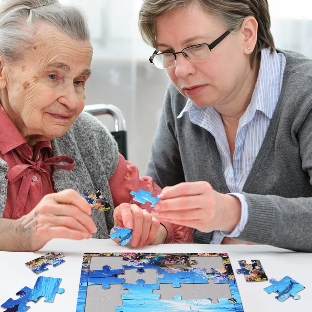 【What You Get】 You will receive 4 sets of Alzheimer's products, each set has 16 pieces of puzzles, you can follow the above puzzle template, easy to understand, you can also hang on the wall as decorations 【Large Puzzles for Seniors】 Each large puzzle measures approximately 30 x 21 x 0.18 cm / 11.8 x 8.2 x 0.07 inches, these large puzzles provide a pleasant way to connect with your loved ones, suitable for people with early to mid-stage Alzheimer's disease, and are a preferred gift for seniors with Alzheimer's disease 【High Quality Material】The adult easy puzzles are made of high quality material, safe and reliable, strong and durable, not easy to break, ensure long time use, give seniors a good gaming experience, and can be used as decorations when finished 【Easy to Handle】 These puzzles are senior-centric and never childish; they are easy to play and the patterns are beautiful to view; plus, you can rest assured that the product's outer packaging makes no mention of dementia. 【Improves Cognitive Performance】 Large-piece puzzles for seniors with bright colors and high contrast can be enjoyed day after day, even by the visually impaired; some studies have shown that repetitive practice is good for cognitive performance. Easy puzzles for adults can improve not only intelligence but also concentration.
