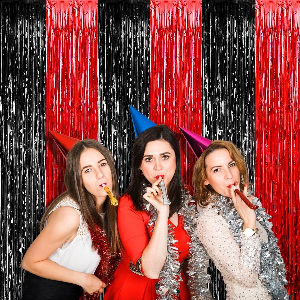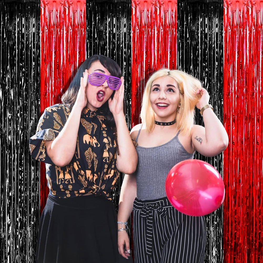 You can DIY put commemorative photos, balloons, banners, LED decorations, and various photo props on this backdrop! All the guests who come to bless you will feel your love and beauty! Package Includes: 4 packs of foil fringe curtain. Size: 3.2 ft x 9.8 ft each Material: Food packaging level mylar, can be reused Suitable for hanging on a door or coverage of a wall fully. Perfect as a party backdrop for birthdays, weddings, bridal showers, baby showers, graduations, Christmas, New Year's Eve, and more! 【Packaging and Size】 4 Packs/SET, enough quantity for your party decoration and Save your money. Each pack of Curtains size is 3.28 feet wide by 9.8 feet long, enough length to decorate your party. 【The Latest Sparkle Foil Curtains】 The metallic fringe curtains are made of aluminum foil with spangle to let the foil curtains more shining and beautiful, making the party complete! 【Easy to use】 Paste or hang them on smooth surfaces, It doesn't take a lot of effort to paste them, Just hang them and paste them gently to make it easier to remove them, when the party is over. There is double-sided tape already fixed to the back of them. Just peel the plastic strip off and hang it up. It sticks really well, so be aware of what surface you are putting it on. 【 Applicable Occasion】 The foil curtains are good for party backdrop curtain, placed on a wall, and serves as a background for photos of any celebrations like birthday party, theme party, Halloween, Christmas, New Year's Eve, bachelorette party, Gender Reveal Party, Anniversary, Hollywood Party, Homecoming, wedding, easter party, carnival party, bridal shower, baby showers, graduations and more. 【Various Colors】 Pair and match with different color fringe curtains to achieve your desired color combination. Show off your creativity by pairing this Gold Foil Fringe Curtain with other Fringe Curtains of different colors to achieve the color combination that you desired.