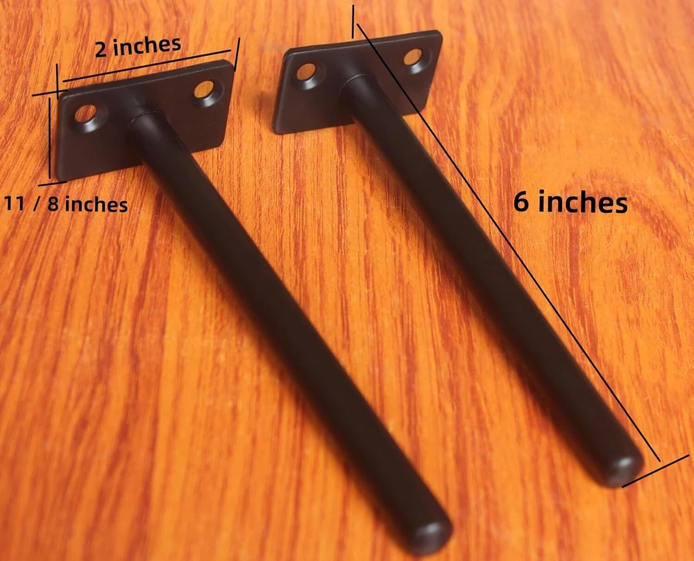 4 Pack 6" Black Steel Tube Floating Shelf Bracket Blind Shelf Supports Hidden Brackets for Size: 6 Inch Number of Items: 4 Color Black Material Mild Steel Item dimensions L x W x H 6 x 2 x 1.1 inches Item Weight 0.4 Kilograms Size - Rod is 6 inches long with 12mm diameter. 1.2mm thickness steel tube,Hollow design. Backplate is 2 inches wide and 1-1/8 inches height.Our hidden shelf brackets hardware pack includes 4 x metal floating brackets, 8 x heavy-duty screws, 8 x drywall anchors Our shelves will hold as much as 60 lbs when mounted to a stud or brickwall because our brackets are made of solid steel and welded components and includes quality screws and anchors.Designed to support 6.5 inches to 8 inches deep shelf Invisible but sturdy : Create a stunning illusion that your shelves are floating to capture a beautiful and elegant modern look to your beloved home. The Brackets will hide inside the shelf, and the shelf will be floating. Return Policy: We offer a 30 day return policy from the receiving date. Please contact us for a Return Label. Please use our return label provided by us because it will go back to our supplier. Feedback: Your satisfaction is very important to us! If you have any problem with your order, please contact us and we will do our very best to make you satisfied. As long as you are happy with your purchase, please leave a positive feedback for us. We will always leave you a positive feedback in return. If you have any problem with your purchase, please do not leave a negative feedback. Please Contact us ... and your issue will be solved quickly and positively We are a small family-owned business trying to make it, not a huge company that doesn't care ... We will ALWAYS do our best for you!