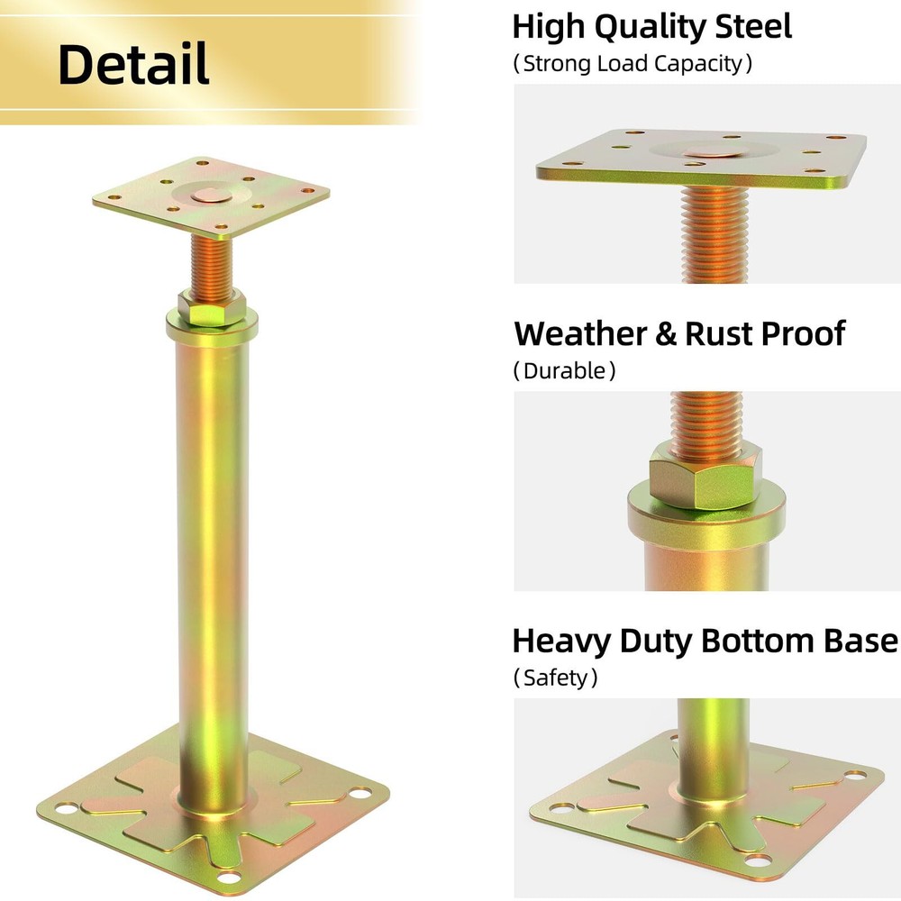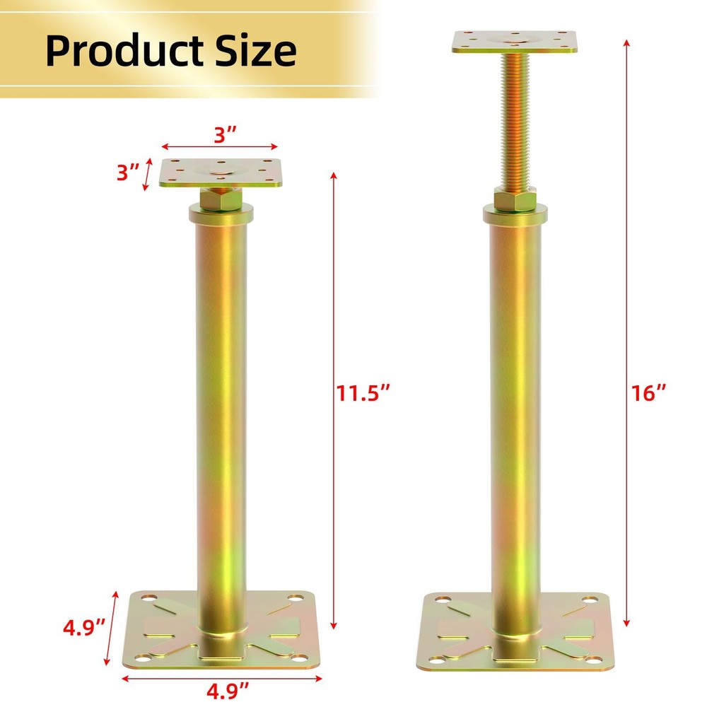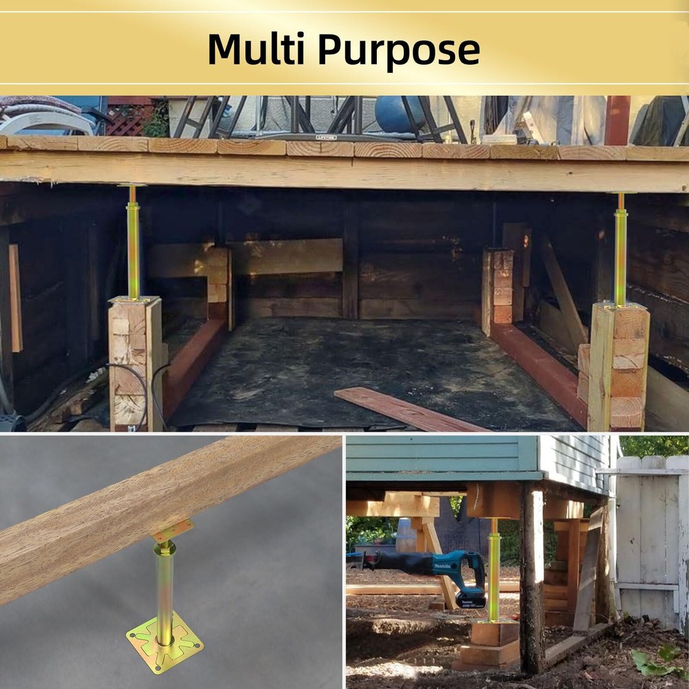 4 Pack House Jacks for Leveling Adjustable Floor Jack Post Floor Jack for House Foundation Jacks for Leveling Telescoping Jack for Temporary Support Adjustable Range 11 inch - 16 inch 【Function】House Jacks for Leveling designed for temporary or additional support for deck, stair, heavy load areas under construction. Safety design, Each Compression Load up to 6500 lbs 【Premium Material】Our Adjustable Floor Jack Post made of premium carbon steel, each compression load up to 6500 lbs. Zinc plated surface, which has excellent Weather & Rust Proof performance durable for long time use. Adjustable range: 11 inch - 16 inch 【Multi Purpose】These jack posts are suitable for temporary or additional support in some areas, such as stairs, porches, roof beams, decks. Perfect for constructing projects, Flooring projects and house improvement 【Installation】1.Fixed the base plate 2. Swivel the top plate to adjust the height 3.Use the wrench to tighten the nut, make sure the jack post height stable, not easy to move 【Package Include & Quality Gurantee】4 Pack House Floor Jack. If you have any quality problems with our product, please feel free to contact us. we will give you satisfy solution 【Function】 House Jacks for Leveling designed for temporary or additional support for deck, stair, heavy load areas under construction. Safety design, Each Compression Load up to 6500 lbs 【Premium Material】 Our Adjustable Floor Jack Post made of premium carbon steel, each compression load up to 6500 lbs. Zinc plated surface, which has excellent Weather & Rust Proof performance durable for long time use. Adjustable range: 11 inch - 16 inch 【Multi Purpose】 These jack posts are suitable for temporary or additional support in some areas, such as stairs, porches, roof beams, decks. Perfect for constructing projects, Flooring projects and house improvement 【Installation】1.Fixed the base plate 2. Swivel the top plate to adjust the height 3.Use the wrench to tighten the nut, make sure the jack post height stable, not easy to move 【Package Include & Quality Gurantee】4 Pack House Floor Jack. If you have any quality problems with our product, please feel free to contact us. we will give you satisfy solution Shipping We offer FREE shipping on all orders! We ship within Three business days of payment, usually sooner. We use a selection of shipping services such as UPS, FedEx, USPS etc. We only ship to the lower 48 states, no APO/FPO addresses or PO Boxes allowed. Local pickups and combined shipping options are not provided at this time. Return You can return a product for up to 30 days from the date you purchased it. Any product you return must be in the same condition you received it and in the original packaging. Please keep the receipt. Payment We accept payment by any of the following methods: PayPal Please pay as soon as possible after winning an auction, as that will allow us to post your item to you sooner! Feedback Customer satisfaction is very important to us. If you have any problem with your order, please contact us and we will do our best to make you satisfied. Contact Us If you have any queries, please contact us via ebay. We usually respond within 24 hours on weekdays. Please visit our eBay store to check out other items for sale! Thank you for shopping at our store.