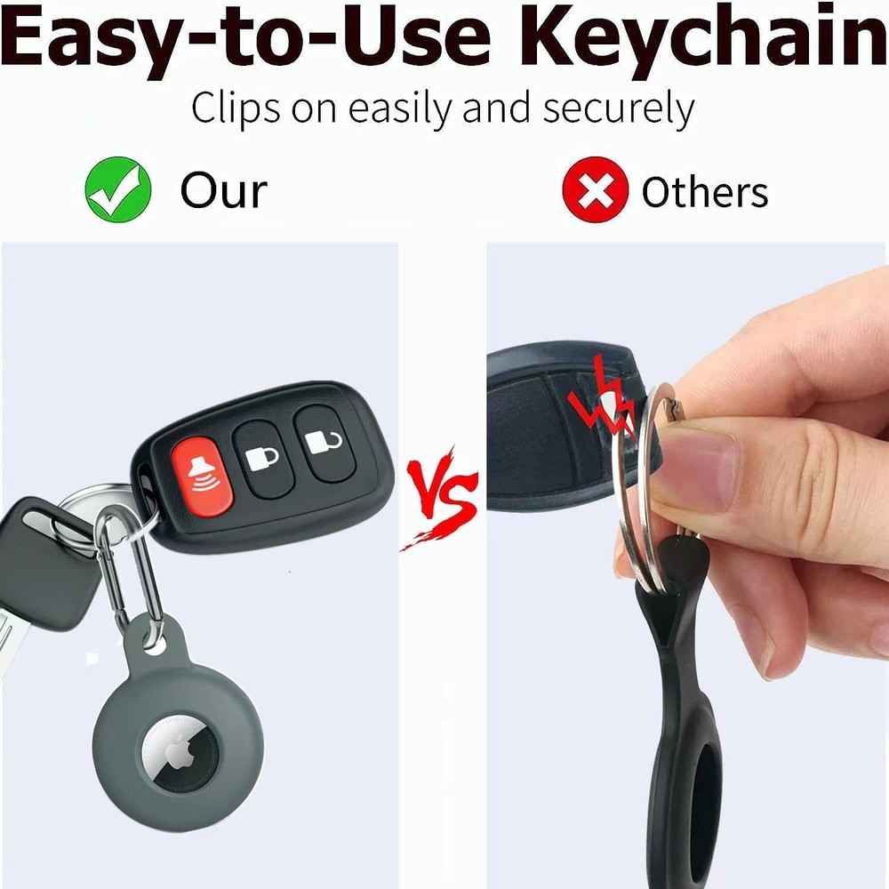 [All-round Protection]: The soft silicone Airtag Holder provides stronger cushioning in the event of a collision or fall, and fully protects your Airtag. The small hole design ensures that the Air Tag will not slip off during the event. [High-quality Material]: This silicone Air Tag Holder is made of environmentally friendly liquid silicone, which can be washed with water to ensure repeated cleaning and always maintain a new state. Specially designed for New Apple AirTags 2021. (Note: AirTag is not included) [Wide Use]: The Airtag Keychain uses high-quality carabiner, which is more versatile and robust than traditional key rings. The Airtag Case allows your Air Tag to be easily hung anywhere, such as kids' backpacks, keys, dog collers, etc., anything you think is valuable. [Effective Tracking]: The exposed hole design is very conducive to signal transmission and humanized installation. You can quickly install Airtag and use it to find items you need to track. The Airtags housing does not block the tracking signal. [Quality Service]: If there is any problem with these five airtag protective covers, please feel free to contact us for return or refund. Our team will provide you with a satisfactory solution within 12 hours.