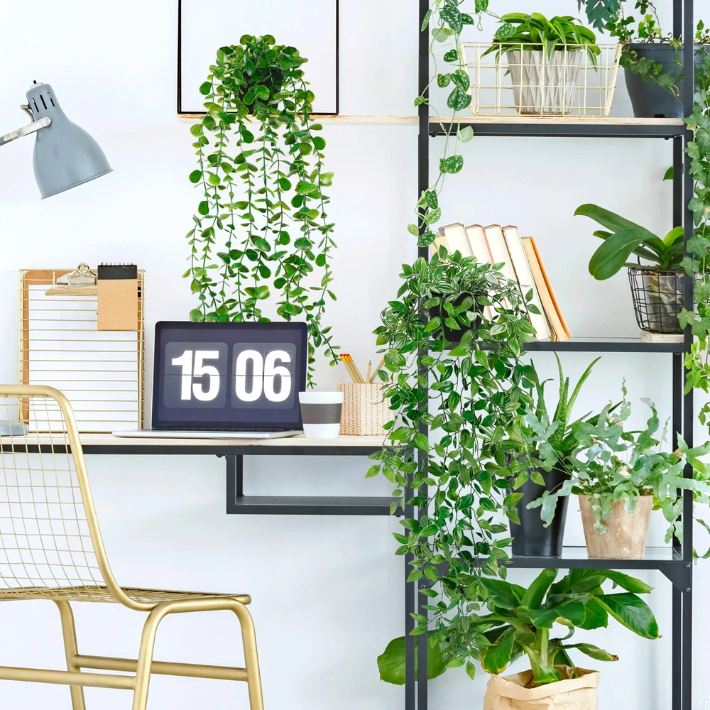 These artificial hanging plants are a game-changer for home decor! The set of four adds a fresh, lifelike touch to shelves, desks, or walls without any maintenance. The different styles—eucalyptus, pea pods, mandala leaves, and string of pearls—create beautiful variety, and the black pots give a sleek, modern look. The material feels realistic and stays vibrant, perfect for brightening up any space. Love how easy they are to style—just hang and enjoy instant greenery!