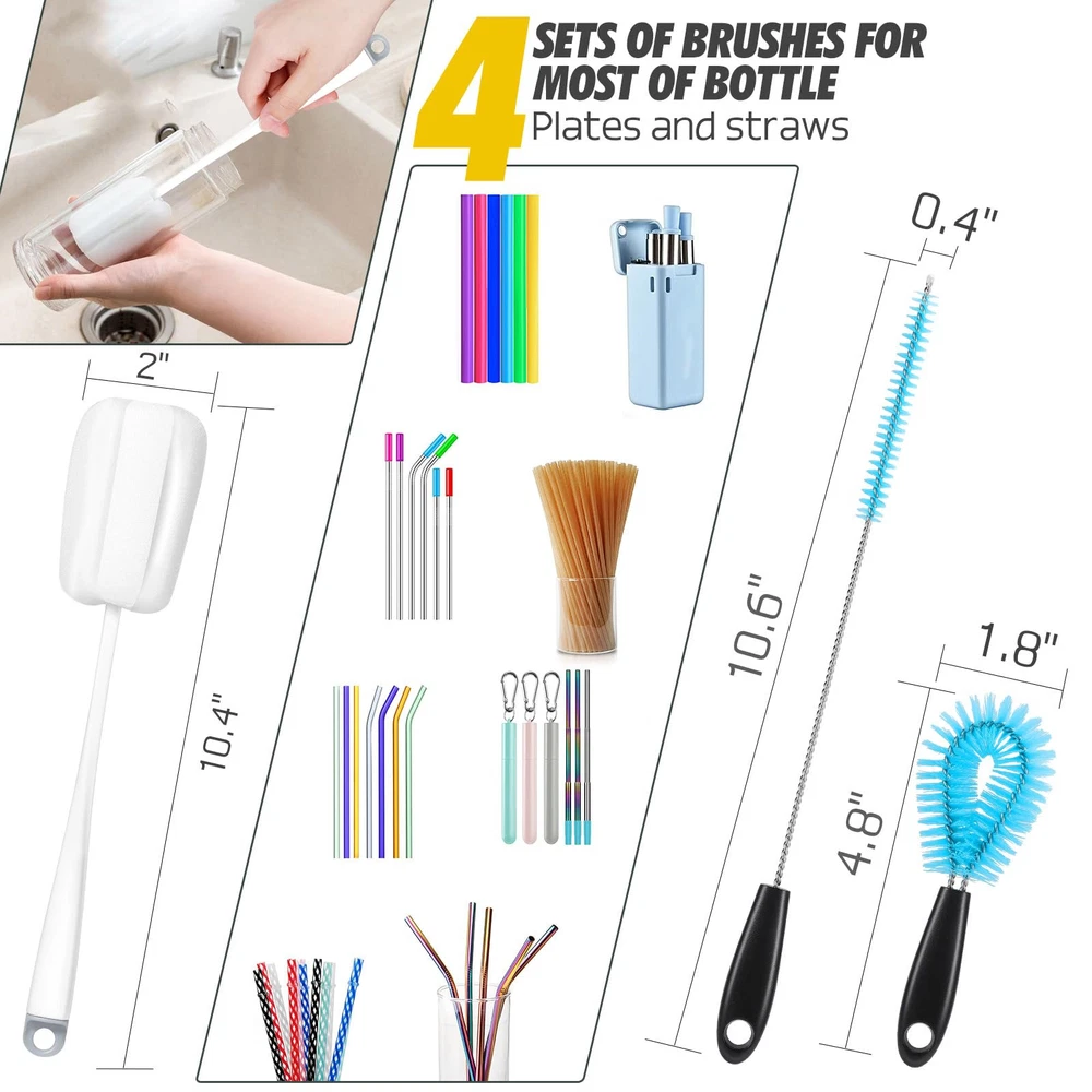 4 Pack Bottle Brush Narrow Neck Cleaning Set, Long Handle Stainless Steel Wat...