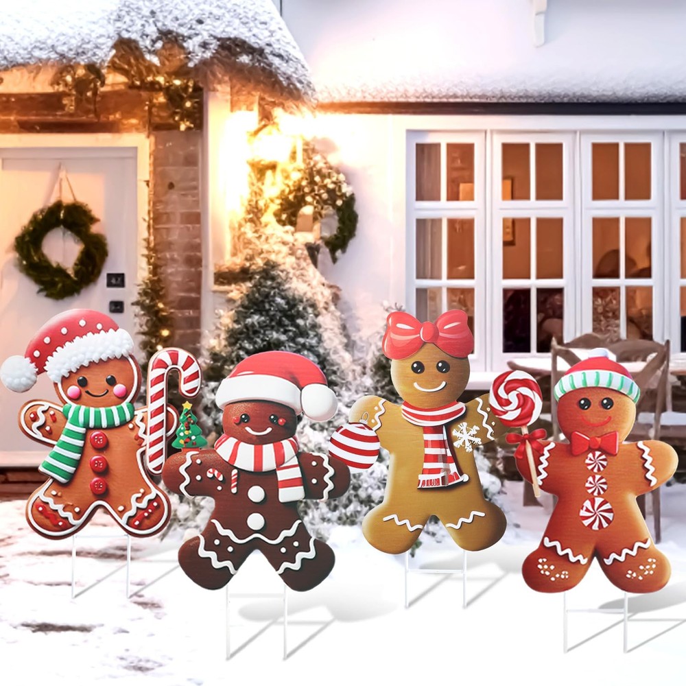 Christmas Decorations Outdoor, 2Pcs Gingerbread Man Metal Yard Signs with Sta...