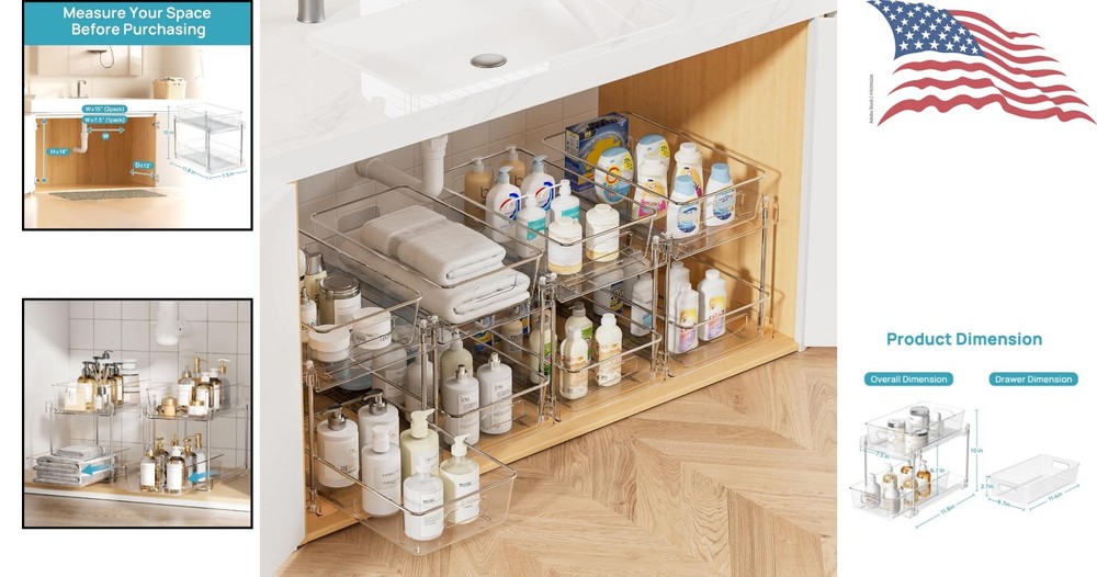 4 Pack Clear 2-Tier Bathroom Organizer - Pull-Out Under Sink Storage Containers ‹ › ‹ › ‹ › ‹ › ‹ › ‹ › ‹ › ‹ › ‹ › 4 Pack Clear 2-Tier Bathroom Organizer - Pull-Out Under Sink Storage Containers Essential Storage Solution: Multi-purpose organizer that keeps your vanity or bathroom countertop tidy. Can be used as an under sink organizer, kitchen organization, pantry organizer, refrigerator storage, or cabinet storage. Perfect for storing cosmetics, toiletries, perfumes, cleaning supplies, snacks, bottles, and spice jars. Effortless Installation: No tools required – setup is simple and takes only a few minutes. You can easily assemble a stable pull-out bathroom organizer. Note: Exercise caution while inserting the stainless steel tubes into the frame to avoid scratches. Maximized Vertical Storage: Overall dimensions: 11.8"L x 7.5"W x 10"H. Designed to comfortably share space with plumbing, maximizing the vertical storage under the sink. Say goodbye to clutter in tight spaces. Slide-Out Drawer & Stable Structure: Features two pull-out drawers with tracks that prevent swaying during use. Built-in handle for easy access to hard-to- items. Fitted with 8 silicone non-slip pads for enhanced stability when pulling the drawers out. Durable & Clear Visibility: Made of durable PET material with four stainless steel support tubes that resist rust. Top drawer can support up to 15LB while maintaining a clear design for easy visibility. Saves time and helps keep everything organized and easily accessible. Why Choose Our Bathroom Organizer? Transform your cluttered spaces into organized sanctuaries with our 4 Pack Clear 2-Tier Bathroom Organizer. Crafted from high-quality materials, this versatile storage solution is designed for functionality and style. Its durable construction ensures longevity, while the clear design provides effortless access to your essentials. Don’t let chaos reign in your bathroom or kitchen – order your set today and embrace the elegance of organized living! Shipping Free & Fast Shipping - We offer free shipping to most of the USA with a normal delivery time of 3-7 days. However, due to the current situation, additional delivery time (up to 3 weeks) may be required for some items. Alternative Carriers - We may use alternative carriers (e.g. USPS, FedEx, UPS, etc.) to ensure your package arrives safely and on time. Due to the use of multiple carriers, we are unable to provide a tracking number automatically. Handling Time - Orders are processed and shipped within 1-2 business days of receiving cleared payment. Shipping Restrictions - Shipping to Alaska, Hawaii, Puerto Rico, Guam, and other US territories may incur shipping charges or delivery restrictions. Please contact us before ordering, or your order can be refunded/cancelled. State Restrictions - There may be restrictions based on your state of purchase. For example, certain items may not be shipped to California due to state regulations. Contact for Tracking Updates - If you require tracking updates or have any concerns about the delivery of your order, please feel free to contact us, and we will be happy to assist you. Return 30-Day Hassle-Free Returns - We want you to be completely satisfied with your purchase. If you are not, you can return the item within 30 days of receiving it for a full refund or exchange. Easy Return Process - To start a return, simply contact us and we will provide you with a prepaid return shipping label and detailed instructions. Restocking Fee - There are no restocking fees for returns. However, the buyer is responsible for return shipping costs if the return is not due to a seller's error. Refund Processing Time - Refunds will be processed within 5 business days of receiving the returned item in its condition. Payment We accept all major credit cards, PayPal, and Apple Pay for your convenience. Your payment information is secure and encrypted to ensure a safe and seamless transaction. Please complete your payment within 3 days of purchase to avoid any delays in shipping. Feedback Your feedback is extremely important to us. We strive to provide the best products and customer service possible. If you are satisfied with your purchase, please take a moment to leave us a positive review. If you have any concerns or issues with your order, please contact us before leaving negative feedback. We are committed to resolving any problems and ensuring your satisfaction. Contact Us If you have any questions or concerns, please feel free to out to our customer support team. You can contact us through the eBay messaging system. We are available Monday to Friday, 9:00 am to 5:00 pm EST, and we will do our best to respond to your inquiry within 24 hours. Buy it now and enjoy a pleasant shopping experience! Item Weight: 7 pounds Capacity: 15 pounds Unit Quantity: 4.0 count Material: Plastic,Stainless Steel,PET Suitable For: Sink,Cabinet,Under Sink,Kitchen,Pantry,Refrigerator Mounting: Tabletop Mount,Tabletop Features: Easy to remove,Rust Resistant,Stackable,Durable,Transparent Design,Easy to Install,Pull-Out Drawers,Non-Slip Pads,Multi-Purpose,Space Saving,Stable Structure Room: Bathroom,Kitchen,Pantry,Office Color: Clear Type: Organizer Shape: Rectangle Item Height: 10 Inches Finish: Polished Number of Items in Set: 4 Style: Modern