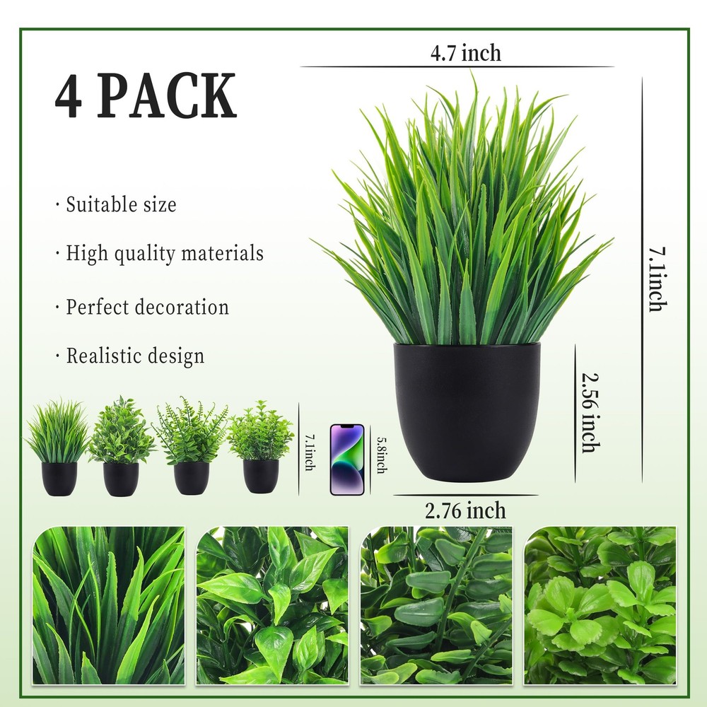4 Pack Fake Plants Artificial Small Faux Bathroom Home Kitchen Office Desk Decor