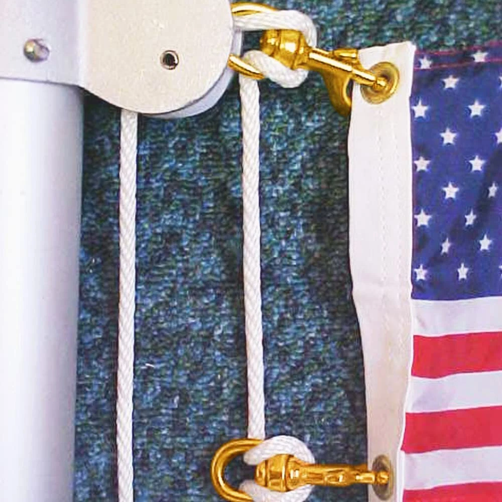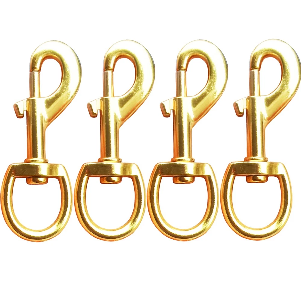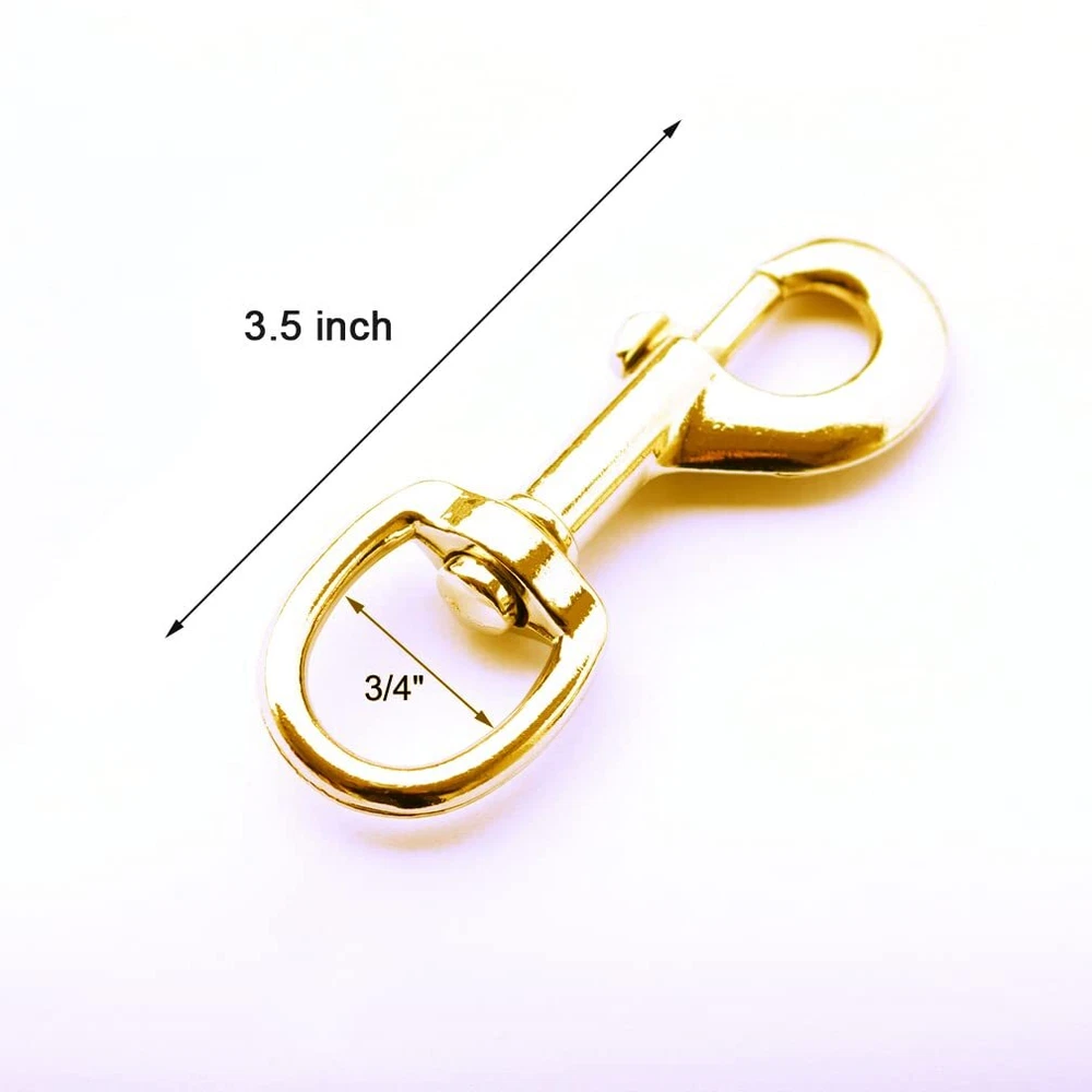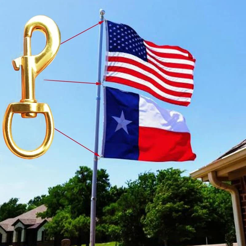 SIZE: Measures 3.5 Inches in length, swivel has an ID of 3/4" in width, Up to 70 pound safe load, great for your flag pole and will hold up for long times of use INCLUDES: 4 pcs gold color snap hooks, Nickel plated with corrosion resistant, heavy duty and extra-secure, Designed for flags with grommets USABLE: Great for attach the flag to the halyard on a flagpole, Easy to attach and remove from the flag EASY TO USE: Take your halyard rope crimp to small loop and pass through the small closed circle of the clips, then pull the loop and tighten with the top of clip, finally attach to flag; Great replacement clips hook on flag pole and add an additional flag even a lot of wind pressure Multi-Purpose: Great for home and outdoor, Also can be used for lifting, dog leashes, bag straps, gate latches, securing cable wires and more