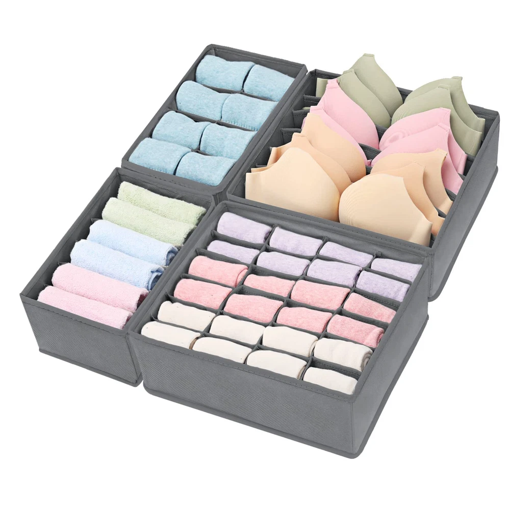 4 Pack Foldable Underwear and Bras Drawer Organizers, Fabric Closet Dresser D...