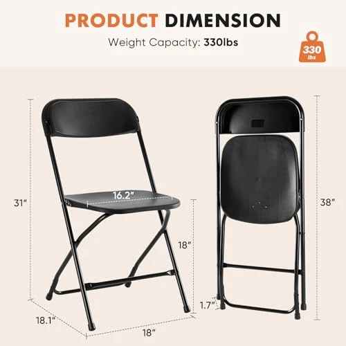 Return Policy Fast Delivery Trusted seller 4 Pack Folding Chairs, Plastic Chairs with 330-Pound Capacity, Sturdy Metal Frame, Easy to Fold and Store, Comfortable for Indoor & Outdoor Use, Perfect for Home, Office, and Parties, Black Product Description Durable & Stable: This folding chair features a premium metal frame with a plastic coating to resist rust and ensure long-lasting durability. Reinforced side bars create a triangular design that enhances stability. The seat cushion is made from high-quality plastic, offering water resistance, durability, and effortless cleaning, making it perfect for both indoor and outdoor use. Sturdy & Secure: This folding chair features a heavy-duty metal plate beneath the seat, made from thickened steel, supporting up to 330 pounds. The strong construction ensures the chair remains stable and won't bend or wobble under weight, offering a reliable and comfortable seating experience with added safety. Portable & Space-Saving: Weighing just 6.8 lbs, this folding chair is lightweight and easy to transport. Its simple foldable design allows for convenient storage when not in use, helping you save space. Perfect for both indoor and outdoor events, such as large banquets and gatherings, this chair combines portability with practicality. Classic & Elegant: With its clean metal frame and premium plastic seat, this chair combines simplicity and style. The minimalist design complements any decor, adding a subtle yet refined touch to your space. Its classic look effortlessly enhances both modern and traditional settings. Effortless Setup: These folding chairs come fully assembled, allowing you to easily open and fold them in just seconds. Ideal for meeting rooms, reception areas, weddings, gatherings, churches, and various events, they offer quick and convenient seating whenever needed. Shipping Returns Payment Shipping Shipping is FREE to all addresses other than APO/PO boxes in the lower 48 states. All our stock ships from US-based warehouses. Shipped via USPS or UPS (depending on location and package weight) Unless stated otherwise, all orders will ship within 24-72 hours of your payment being processed. Check our feedback to see the great reviews of FAST shipping we offer. Returns Seller does not accept returns Payment We currently accept payment via eBay managed payments only. Once payment is cleared, we will dispatch your shipment within 1-3 business days. Please refer to the "Shipping" tab for more information regarding shipping speed to your destination.