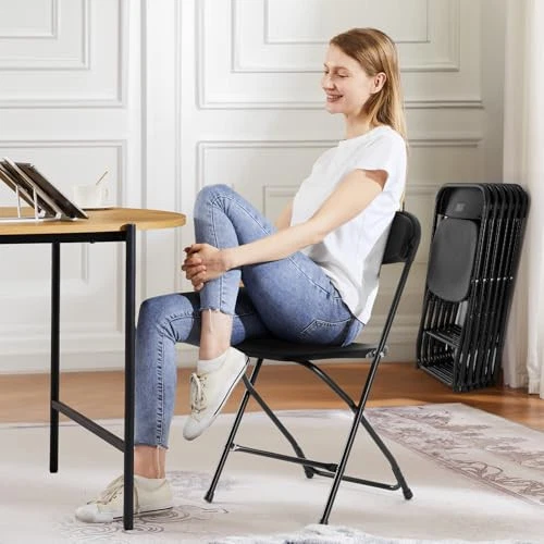 4 Pack Folding Chairs, Plastic Chairs with 330-Pound Capacity, Sturdy Metal