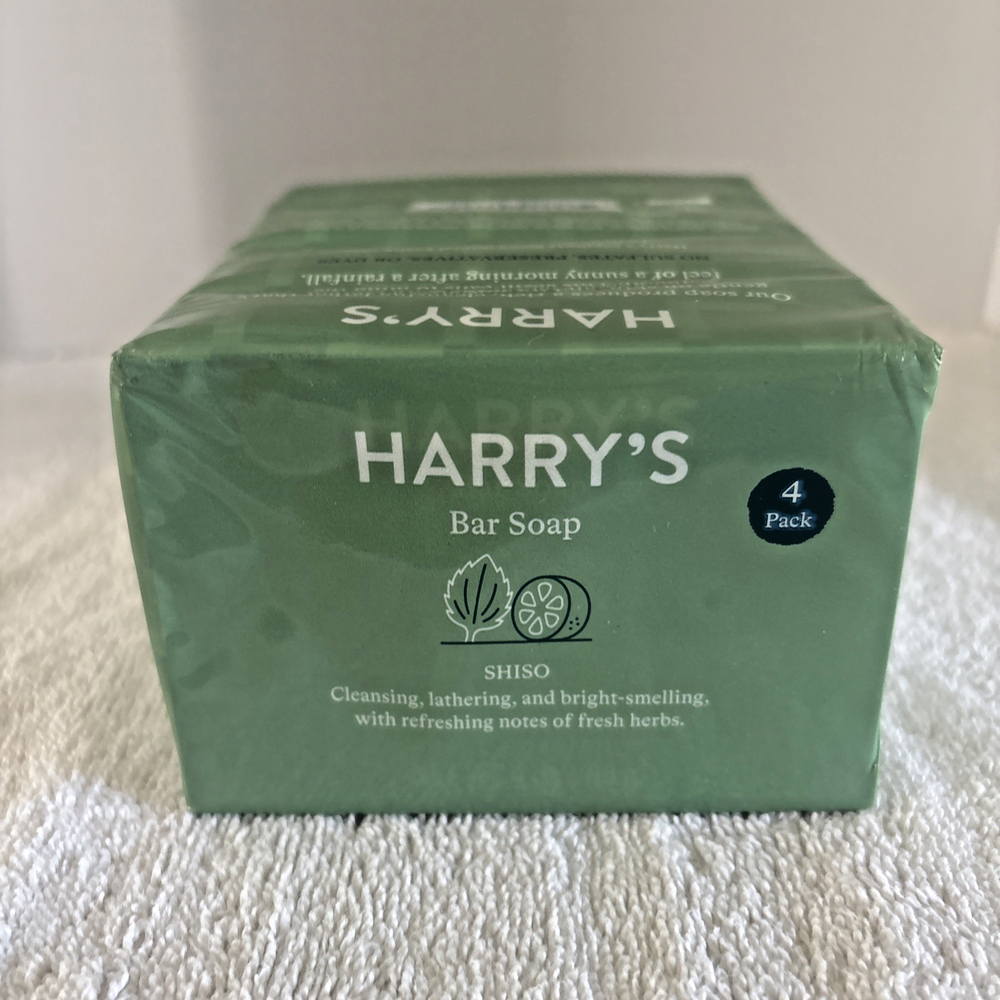 Harry's Bar Soap for Men, Shiso Scent of Bright Herbs, 4 Pack About this item Foaming bar soap in Harry's Shiso Scent Shiso is a refreshing scent of bright herbs - Crushed Shiso, Oakmoss, Lemon Zest Produces a rich lather and cleanses deeply without drying out skin Leaves your skin smooth and conditioned, even long after your shower or bath Made without sulfates, parabens, or dyes Pack of 4 bars Free Shipping Sold as pictured