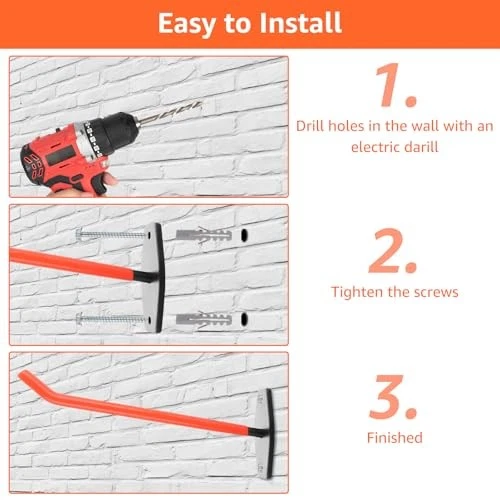 Menu 1. We require immediate payment. 2. We currently accept payment via eBay managed payments only. 3. Once payment is cleared, we will dispatch your shipment within 1-3 business days. Please refer to the "Shipping" tab for more information regarding shipping speed to your destination. 4 Pack Garage Hooks Heavy Duty 10 Inch Tire Rack Wall Mount Holds up to 88Lbs, Garage Storage Hooks for Hanging Bikes, Ladders, Chairs and Bulky Tools Product description 【10 Inches Heavy Duty Garage Hooks】You will 4 pack 9.8 inch long garage hangers with 16 pcs screws and 16 pcs wall plugs. Long and strong enough to hold various tools very sturdily especially large and heavy items like shovel, broom, power tools, garden tool, chair, bike, weed eater, stool, ladder, etc 【Premium Metal Materials】The large garage hooks is made of heavy-duty solid steel construction, which provides Anti-rust, corrosion-resistant. And the vinyl coated orange protects your tools. The tubular double hooks design makes the garage utility hooks more stable than regular single hooks. Rain or shine, this garage storage hooks stands strong 【Space-Saving Organization & Load-Bearing Capacity】The garage hooks for hanging can safely load capacity 88 lbs﹙40 kg﹚.Whether you need to store your garden tools in the basement, garage, shed, or kitchen, this wall-mounted organizer can help you declutter your space and keep your tools neat and accessible 【Easy Installation】Provided with all necessary components for assembly, you only need to follow the steps for installation. Each wall mount hook comes with screws to fit drywall, wall studs, plaster, wood, brick, and concrete walls 【Wide Applications】With large bracket and bold screws, this long utility hooks can meet all the needs of your garage equipment and garden tools organization,strong enough to hold various tools very sturdily especially large and heavy items like shovel, broom, power tools, garden tool, chair, bike, weed eater, stool, ladder, etc PLEASE MESSAGE US IF YOU HAVE ANY OTHER QUESTIONS, AND MANY THANKS FOR READING ALL OF THIS. Copyright ©#. All Rights Reserved.