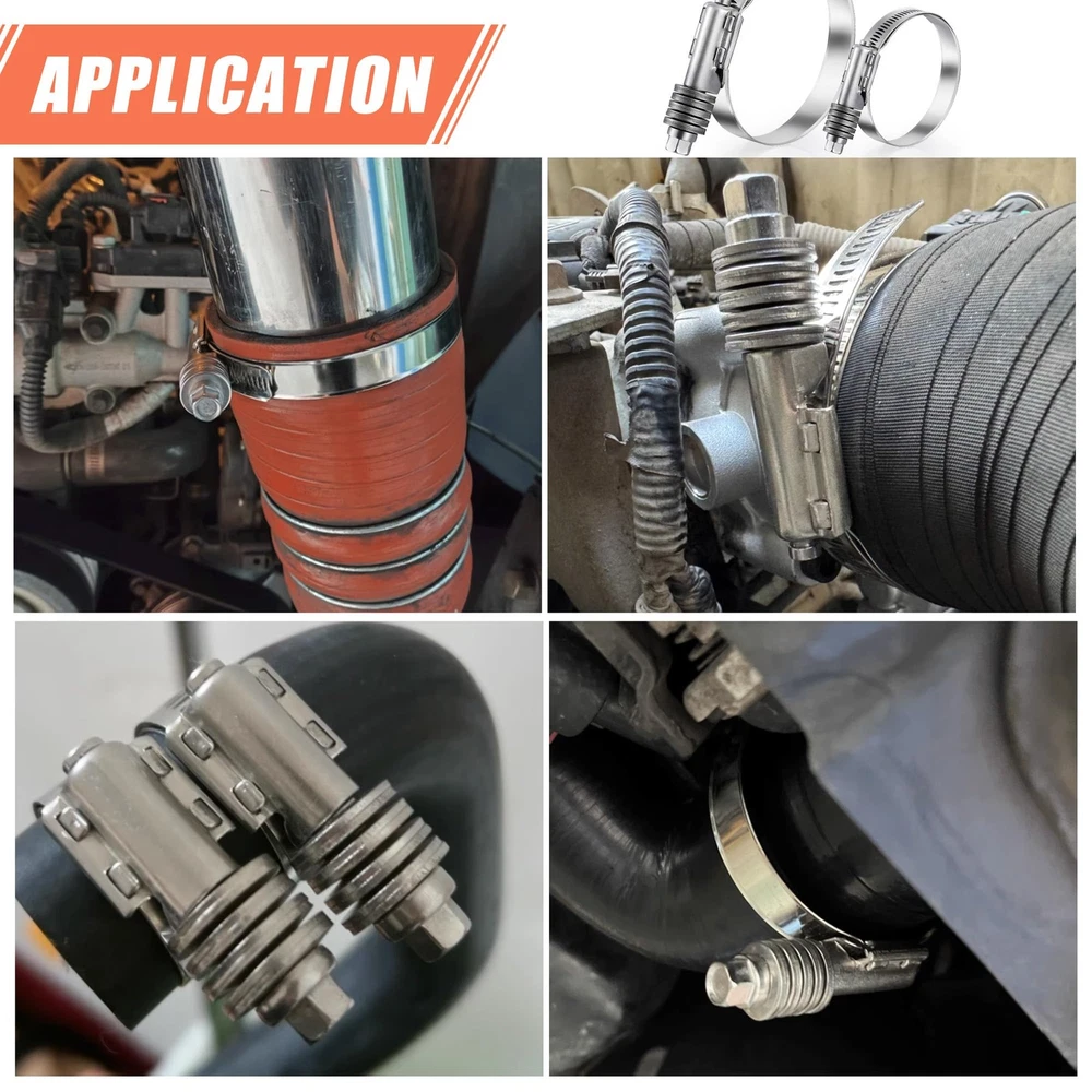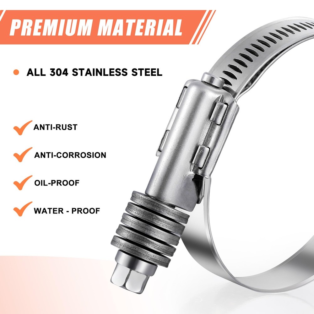 4 Pack Worm Hose Clamp, Adjustable Range 2 1/4"-3 1/8" (57-79mm) 307 Stainless Steel Worm Gear Drive Hose Clamps for Water Pipe, Plumbing, Automotive and Mechanical Application 【Hose Clamps Size】 The heavy worm hose clamp adjustable work range 2 1/4"-3 1/8" (57-79mm); Band Width: 0.62"(15.8mm); Thickness:0.03"(0.8mm);WARM TIPS: Please carefully check and measure your hose outside diameter to fit working range before purchasing our products. 【High Quality】The hose clamp is made of 304 stainless steel, which can resist corrosion and rust in the marine environment. Constant tension spring maintains clamping pressure through a wide range of temperatures. 【Exquisite Craftsmanship】The Worm Gear Drive Hose Clamps has beautiful appearance, precision polishing, and the surface is smooth and burr-free. 【Easy To Use】just use a screwdriver to loosen the screw of the hose clamp, then pass the pipe through the hose clamp and adjust the size to fit the size of the hose and tighten the screw. 【Reusable】These hose clamps are exactly what you need when repairing your house or car. They are reusable and durable, and the connection is leak-free.