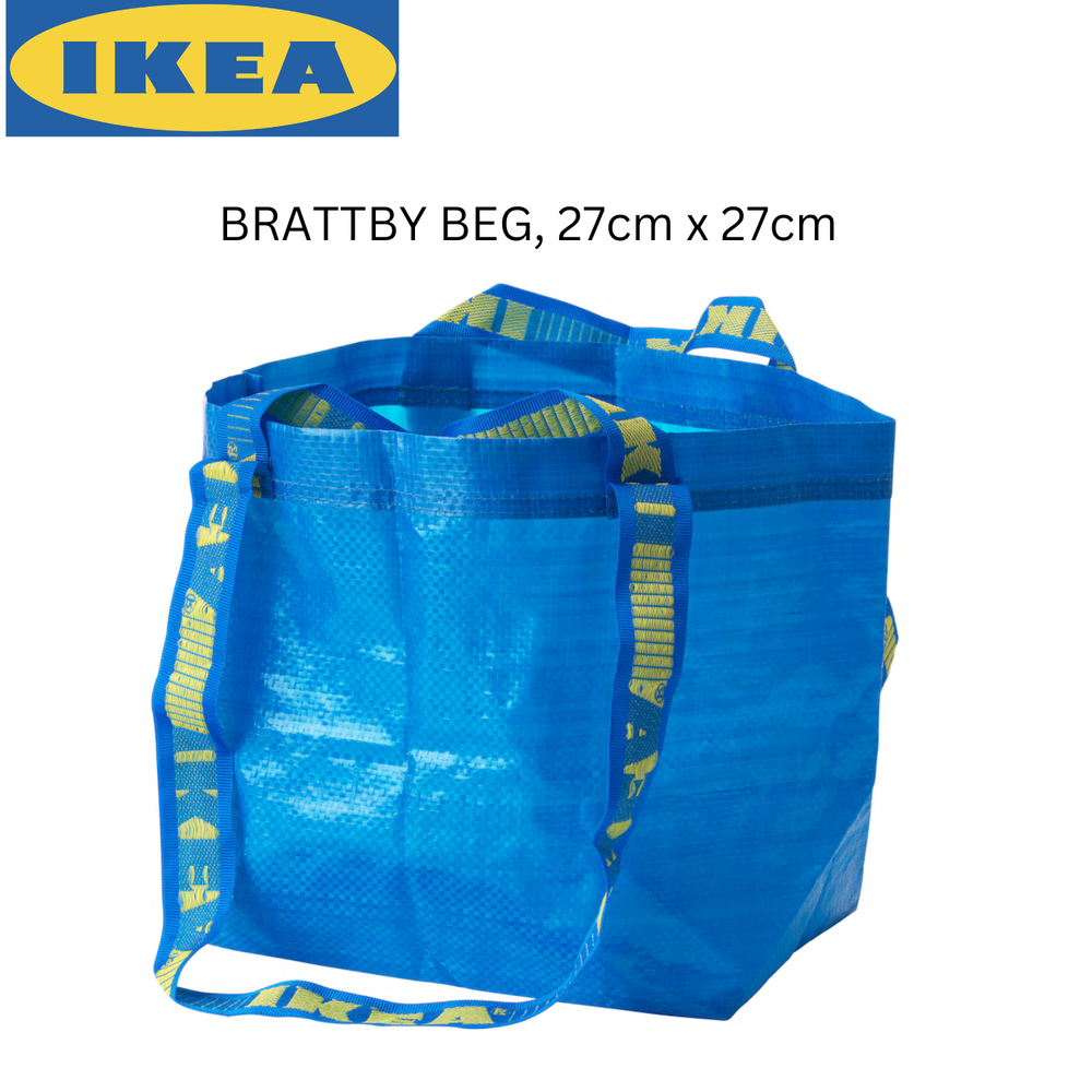 4 x IKEA BRATTBY Small 27 x 27cm Grocery Laundry Shopping Storage Tote Bag Product This slightly smaller bag is made from the same durable, easy-care material as its iconic blue counterpart. Perfect for shopping, laundry, or beach trips. Shipping Shipping using economy shipping from outside USA. Please allow 3-5 business days handling time and estimated delivery time within 14-21 days. Contact We may be reached at any time through eBay messages shall you have any inquiries or special requests. We will usually respond to you within 24 hours. Product Details: Made from durable, easy-care material. Folds flat for convenient storage. Ideal for shopping, laundry, or beach trips. Easy to clean—just wipe with a damp cloth. Sturdy design with a 12 kg max load capacity . Measurements: Length: 27 cm Width: 27 cm Height: 18.5 cm Max Load: 12 kg Package Quantity: 4 designed by © theoriginsdotcom .