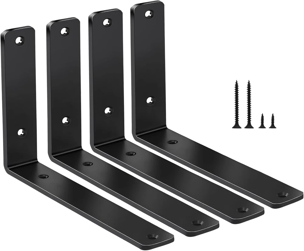 Store New Arrivals Add to Favorite View Feedback Contact 4 Pack - L 6" X H 4" X W1.5, 5Mm Thick Black L Shelf Bracket, Iron Shelf Brackets, Metal Shelf Brackets, Floating Shelf, Shelf Supports with Screws Description Item model number BXGZC-22 Part Number BXGZC-22 Style Black 4 Pack Finish Powder Coated Mounting Type Wall Mount Item Package Quantity 1 Color Black Brand MHMYDZ Material Mild Steel Item Depth 1.5 inches Batteries Required? No Item Weight 8.16 ounces Batteries Included? No Manufacturer MHMYDZ Finish Type Powder Coated Package Dimensions 7.28 x 4.49 x 1.93 inches Size 6''x4'' Heavy Duty design, maxium support weight of 100lb for a pair of this L bracket. Matte black powder coat finish. Creating a rustic, reclaimed, salvaged look,perfect for your home, office, garage, work space or anywhere else Size:L 6" x H 4" x W 1.5", 5mm Thick. Package included: 4 x Brackets , 8 x long Screws, 8 x short Screws,(Wood plank is Not included)Our heavy-duty brackets can support Audio Equipment,bookshelf,kitchen ware,electric power tools , TV bench ,farm tools,etc Sturdy and durable: Made from steel, these shelf angle supports offer a strong bearing force ,Our corner brace joints are perfect for hanging in a garage, living room or office All screws included - Black screws needed to install your new shelf brackets are included.Our shelf brackets can be used as exhibition stand,bicycle stand,garden shelf, kitchen shelf,office shelf,etc Easy to Install design using basic DIY tools. Easily mount your favorite shelves in your garage, home, office, bathroom, kitchen, living room, dining room, bedroom Product Description ABOUT US We offer the best prices around on high quality products. Our E-store includes media such as books, movies, music and games while offering electronics, toys, sporting apparel, clothing, tools, general home, garden items and more. SHIPPING We are always working hard to ensure your package arrives as soon as possible. Please understand that some factors like weather, high postal traffic, and the performance of shipping companies are outside of our control. We offer free shipping to the lower 48 states and ship within 2 business days of payment, usually sooner. We do not accept P.O. Boxes. Please provide a physical address. RETURNS We offer a 30-Day Return Policy on items which you are not completely satisfied with. You have the option for a full-refund or an exchange of the item. No returns are available on items shipped outside of the USA. PAYMENT We accept PayPal. CONTACT US This page content is yet to come Please ad us to your favorite seller and visit again later Thank You CUSTOMER SATISFACTION We try our very best to make sure every customer is completely satisfied. If there's a problem, message us! We're happy to help.
