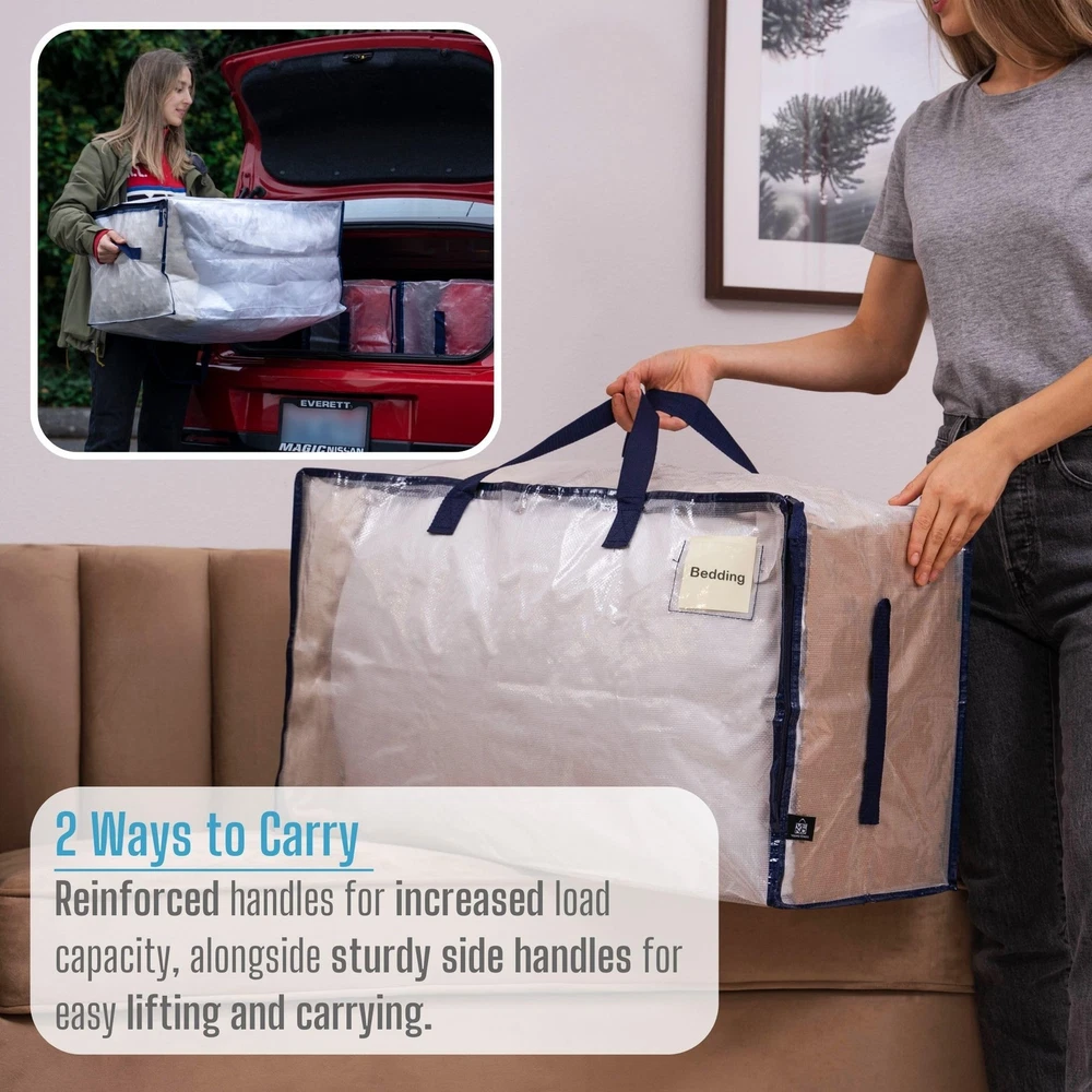 VENO 4 Pack Moving and Storage Bags, Heavy Duty, Alternative to Moving Boxes, Large Packing Totes Supplies for College Dorm Room with Zipper for Clothes, Wide Open Design (Clear, 4 Pack) Perfect for Moving and Storage – Whether you're moving to a new home or organizing seasonal storage, easily sort and identify your items, including blankets, bedding, comforters, towels, pillows, linens, and stuffed animals. Keep everything organized and accessible with ease! Spacious & Wide-Open Design – Featuring a 3-sided zipper design, this bag opens wide for effortless packing and unpacking, saving you time and hassle. The spacious top allows easy access, making organizing and retrieving your items quick and convenient. Measuring 27.6" W x 16.5" H x 13.8" D, it offers a capacity of 100 liters or 27 gallons. Moving Box Alternative: A lightweight, economical, convenient alternative to moving boxes, bins, or containers. No additional packing supplies required; simply unfold, unzip, and start packing.These reusable bags collapse easily, stack neatly, and fold flat into a compact size for effortless storage in your drawer, closet, car, or luggage. Additionally, they are easy to clean with a damp cloth or wipe, ensuring hassle-free maintenance between uses. HEAVY-DUTY: Sturdy construction safely supports 50 lbs. Made of high-grade, water-resistant, thick polypropylene woven fabric material which is durable and built to last. Protects from dust and dirt. Strong and long poly webbing carrying handles are reinforced for extra strength, security, and durability. Heavy-duty side handles make the bag easy to transport. A premium dual tab zipper goes around the bag allowing it to open wide for easy loading and unloading. Multi-Functional:Versatile and multi-purpose, suitable for moving, storing, transporting, laundry, camping, traveling, organizing, space-saving, under-bed storage, small trips, etc. Ideal for moving into your new apartment or college dorm room, storing winter clothes and bedding in your wardrobe, and keeping pillows and blankets clean and dust-free for guests during RV trips. Great for storage in your closet, garage, basement, attic, or storage unit. SHIPPING Domestic Buyers - We have confidence in our products, but if you are not fully satisfied please contact us within 30 days of purchase and you will get full refund. - We ship within 3 business days of payment, usually sooner - We offer FREE shipping on all orders! - We only ship to the lower 48 states, no APO/FPO addresses or PO Boxes allowed International buyers – please note: Import duties, taxes, and charges aren't included in the item price or postage cost. These charges are the buyer's responsibility. - Please check with your country's customs office to determine what these additional costs will be prior to bidding or buying. * Order Cancellation Policy ** You can return a product for up to 30 days from the date you purchased it. 1. The seller reserves the right to cancel the special case only due to eBay cancellation fee. 2. The decision of seller is the final. 3. The seller will respond to the cancellation request within 2 business days. Please wait for the result of cancellation. 4. In case the cancellation is not completed by some reasons, the buyer can follow the options below to get the refund. 4.1 The buyer can reject the item when it arrives. 4.2 The buyer can send the item back to the seller within 30 days If the buyer receives item (USA Shipment ONLY). The seller will provide the FREE return label to the buyer when the buyer opens " Return Item" case on eBay by using the reason as "Change my mind" ONLY. 5. When buyer has placed the order. The order will be processed and completed by automatic warehouse system within 5 minutes. In case that buyer sends the cancellation request after 5 minutes of placing the order, the request will be rejected. **Sending direct message to cancel the order is not allowed for every case.* Return Policy For the return case - If buyer would like to return the items for refund or replacement, please CONTACT SELLER to receive the free return label from seller. The refund or replacement will be processed with the tracking number of return label which is provided by seller only. The other ways of return which are not approved by seller will not be processed for the refund or replacement.