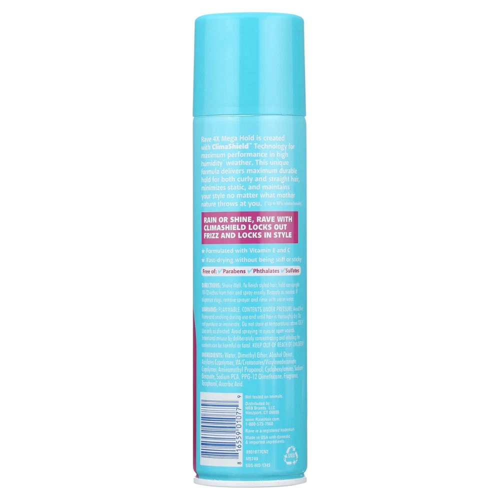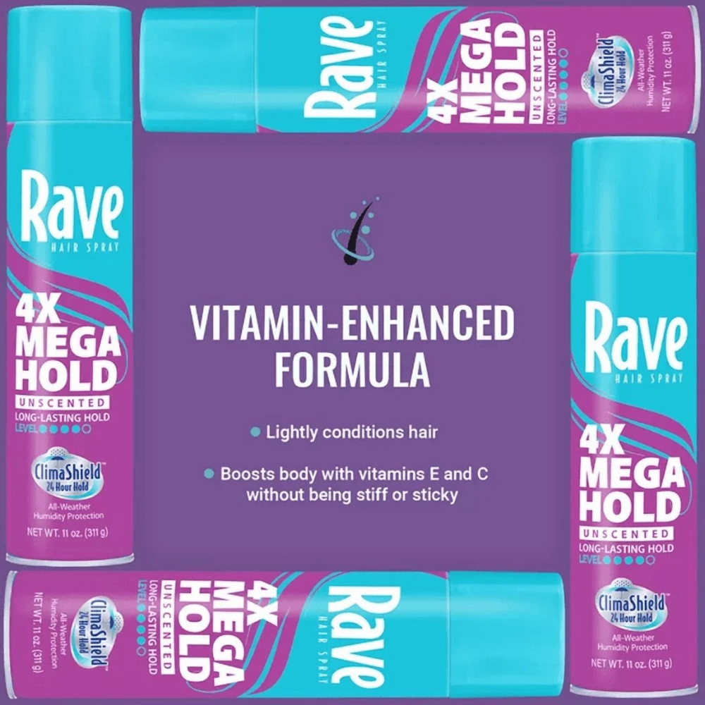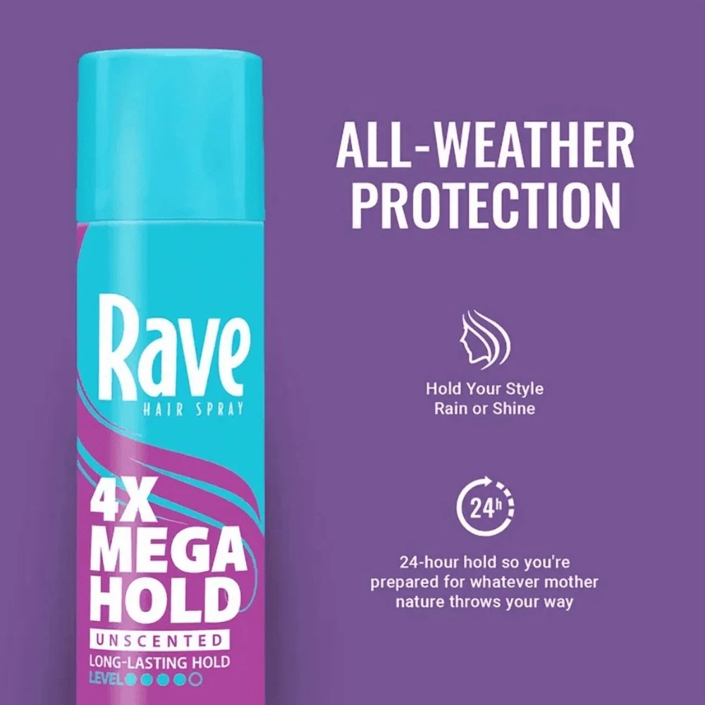 4 Pack Rave 4X Mega Hold Hair Spray, All-Weather with Vitamin-Rich Formula, 11 oz Hairspray, 4x Mega, Unscented, Climashield, Aerosol 11 OZ Long-lasting hold. Firm style control. Now with ClimaShield for extra humidity protection. Hold your style rain or shine. The signature holds your love combined with the new anti-humidity formula, RAVE with ClimaShield keeps hair in place and your style in control. Vitamin enhanced formula lightly conditions hair and boosts the body, without being stiff or sticky. Lockout frizz. Lock in style. Created with ClimaShield Technology, RAVE now not only provides the durable hold you expect for both curly and straight hair but also delivers maximum performance at high humid conditions (up to 90% relative humidity) as well as minimizes the effect of static electricity. Be prepared for whatever mother nature throws your way - rain or shine - in hot or cold weather. Contains no CFC's. Long-Lasting Hold Firm Style Control: RAVE 4x Mega Unscented Hairspray provides the signature hold you love combined with anti-humidity technology to keep your hair in place and your style in control. All-Weather Protection: Hold your style rain or shine. Keeps hair in place with long-lasting, 24-hour hold so you will be prepared for whatever mother nature throws your way in hot or cold weather. Lock Out Frizz, Lock in Style: Formulated for curly or straight hair, ClimaShield Technology locks out frizz with extra humidity protection to provide the durable hold you expect. Vitamin-Enhanced Formula: Lightly conditions hair and boosts body with vitamins E and C without being stiff or sticky. NO parabens, NO phthalates and NO sulfates. Shipping Policy FREE SHIPPING in all orders! Orders are usually processed and shipped out after 72 HOURS during BUSINESS DAYS (Monday to Friday) after payment has been received. But please be reminded that we are NOT processing and shipping orders during WEEKENDS and HOLIDAYS. Please make sure your ADDRESS is VALID for both UPS and USPS COURIER SERVICES. Please be reminded that costs incurred due to INCORRECT or UNDELIVERABLE ADDRESS should be shouldered by the buyer. The shipping services that we use are UPS, FedEx, USPS etc. We ONLY ship to the 48 STATES, NO APO/FPO ADDRESSES or PO BOXES. We DO NOT ship to warehouse, freight company. Local pickups and combined shipping options are NOT provided at this time. Return Policy DOMESTIC RETURN ACCEPTED - 30 DAYS. Contact us for more information. Payment Policy We accept payment by any of the following methods: PayPal Items can be returned for exchange or full refund WITHIN 30 DAYS from the date you receive your merchandise. We are not responsible for any purchase after this 30-day period. Feedback & Contact Us Customer satisfaction is very important to us. If you have any problem with your order, please contact us and we will do our best to make you satisfied. If you have any queries, please contact us via Ebay. We usually respond within 24 hours on weekdays. Thank you for shopping at our store.