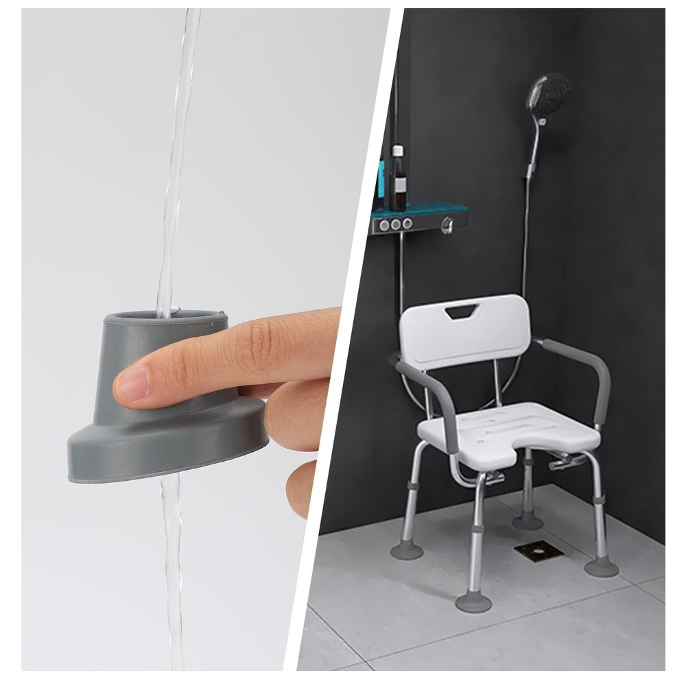 Replacement Feet for Shower Chair Bath Seat, 4 Pack 1-1/8" I.D Slope Rubber Tips Non Slip Shower Bench and Tub Transfer Benches Suction Cup Feet PACKAGE INCLUSION: Made of durable rubber and reinforced with metal inserts, it provides non-slip traction and longer wear time. APPLICABLE MODEL:Tool-free assembly makes it easy for anyone in the family to assemble and use within a few minutes. Fits any brand of 1-1/8 inch tube. HIGH-STRENGTH MATERIAL:The rubber is durable and corrosion-resistant. Its unique inclined legs with non-slip rubber tips allow the user's weight to be distributed over a larger area, thus making the shower more stable. CONVENIENCE: Simple structure, easy to disassemble. and install.Won't take up too much space, easy to carry. AFTER-SALES SERVICE: 100% customer satisfaction: We provide 24/7 friendly customer support to keep you away from after-sales worries.