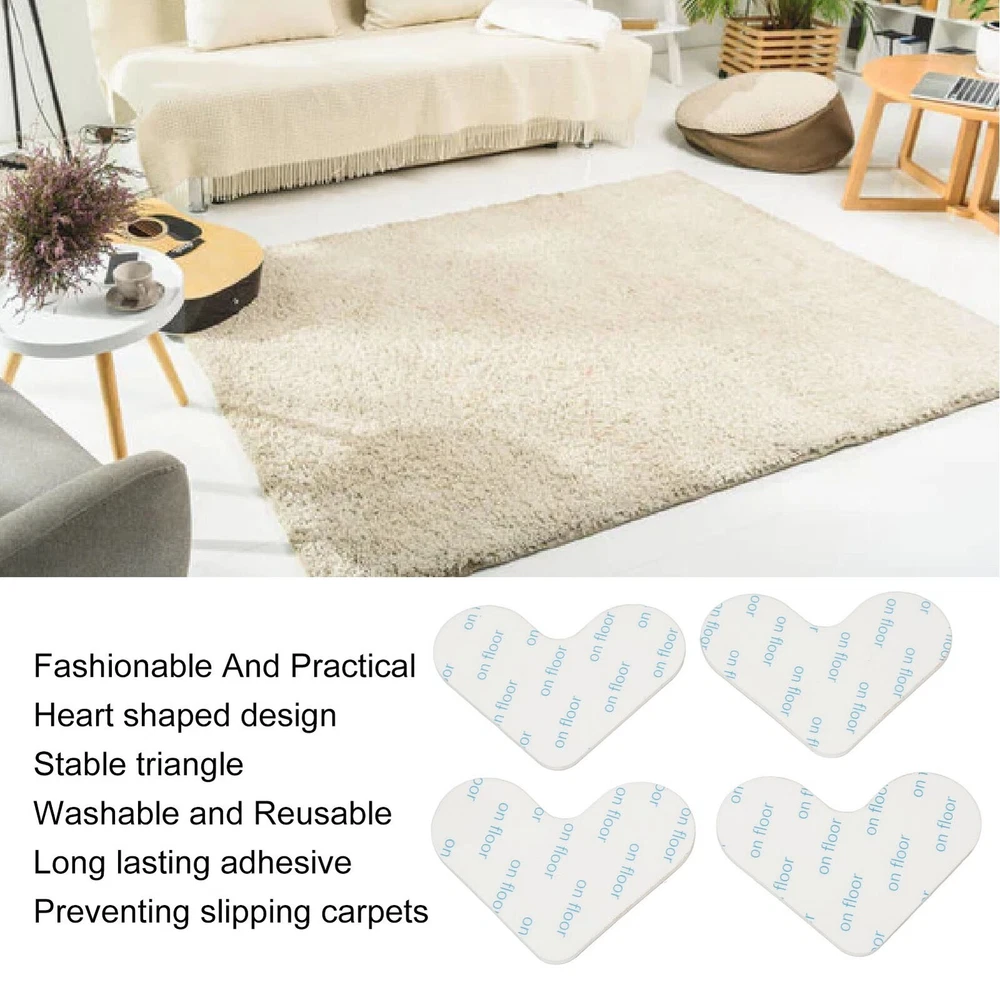 4 Pack Reusable Washable Heart-Shaped Slip-Resistant Double-Sided Carpet Tape