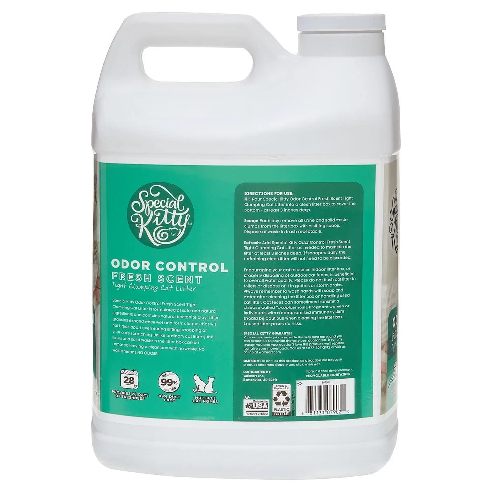 Product details Scoopable Tight Clumping Cat Litter, Fresh Scent provides long-lasting freshness to keep your cat’s personal area exactly that. Fill your cat’s box with a fresh set of litter and notice the difference immediately when you pour, as this litter is 99% dust-free, and is sure to keep your air clear every time you refill your cat’s box. This 20-pound jug includes a handle for convenient maneuverability and easy pouring, as well as the see-through build helps you know when it’s time to pick up some more! Grab a jug of the Scoopable Tight Clumping Cat Litter, Fresh Scent and enjoy the new-found simplicity of tending to your cat’s needs.Promise: At we know that cats rule, and your cat is confident you would only serve her the very best food. That's why each one of our high-quality varieties not only uses wholesome ingredients that support your cat's health, but taste so delicious your cat may actually reward you with a smile. You can always trust to provide nutritious premium products that your cat will crave. It's the promise to you and your cat. Odor Control Tight Clumping Cat Litter, Fresh Scent, 20 lb: Long-lasting fresh-scented odor control to keep your home smelling fresh 99% dust free for a cleaner pour The litter's tight clumping formula makes scooping your cat's box a breeze Great for multiple cats 20-pound jug includes a handle for convenient maneuverability and easy pouring Recyclable plastic container Scoopable Tight Clumping Cat Litter, Fresh Scent, 20 lb:Long-lasting fresh-scented odor control to keep your home smelling fresh99% dust free for a cleaner pourThe litter's tight clumping formula makes scooping your cat's box a breezeGreat for multiple cats20-pound jug includes a handle for convenient maneuverability and easy pouringthe see-through build helps you know when it’s time to pick up some more
