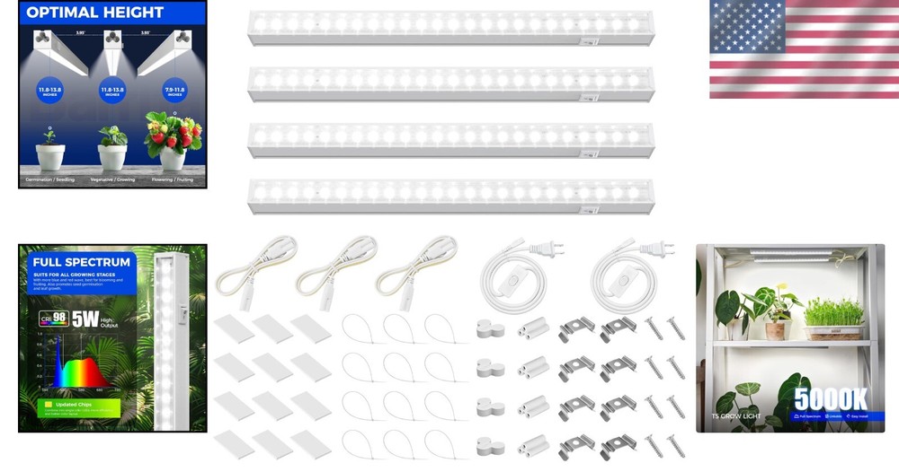 Grow Lights for Indoor Plants 4 Pack T5 Full Spectrum 1ft LED Grow Lamp ‹ › ‹ › ‹ › ‹ › ‹ › ‹ › ‹ › ‹ › ‹ › ‹ › ‹ › Grow Lights for Indoor Plants - 4 Pack T5 Full Spectrum 1ft LED Grow Lamp Transform your indoor gardening experience with our exceptional 4 Pack T5 Full Spectrum Grow Lights, designed to provide your plants with the sunlight they crave. Key Features: 5000K Full Spectrum Light: Mimics natural sunlight, giving your indoor plants the necessary light for optimal growth. Super Bright & High PPFD: Only 20W consumption with 96 powerful LEDs, replacing traditional 120W grow lights. Effective Absorption: Over 95% of light energy can be absorbed, supporting your plants through all growth phases. Individually Controllable: Each fixture comes with an on/off switch for customizable lighting control based on plant needs. Effortless Installation: Comes with double-sided tapes, clips, and cable ties for an easy, DIY setup in just minutes. Expandable Series: Link up to 16 lights in series, allowing for a seamless and organized growing environment. What’s Included: 4 x T5 Grow Lights 2 x Power Cords with ON/OFF Switch 4 x Connecting Cords (20 inches) 4 x Small Connectors 8 x Installation Clips 12 x Double-sided Tapes 12 x Cable Ties Benefits: Enhances growth cycles from seedlings to flowering, ensuring your indoor garden flourishes. Efficient energy usage, saving on your electricity bill while promoting healthier plants. Customizable lighting allows for tailored growth environments suited to each plant’s needs. Quick and hassle-free installation means more time enjoying your garden and less time setting it up. Why Choose Our Grow Lights? Designed for passionate gardeners who value quality and results, our T5 Full Spectrum Grow Lights offer the perfect balance of efficiency and effectiveness. Whether you're nurturing seedlings, maintaining vegetative growth, or encouraging flowering, our grow lamps deliver unparalleled support for your indoor plants. Elevate your indoor gardening game with our grow lights today! Shipping Free & Fast Shipping - We offer free shipping to most of the USA with a normal delivery time of 3-7 days. However, due to the current situation, additional delivery time (up to 3 weeks) may be required for some items. Alternative Carriers - We may use alternative carriers (e.g. USPS, FedEx, UPS, etc.) to ensure your package arrives safely and on time. Due to the use of multiple carriers, we are unable to provide a tracking number automatically. Handling Time - Orders are processed and shipped within 1-2 business days of receiving cleared payment. Shipping Restrictions - Shipping to Alaska, Hawaii, Puerto Rico, Guam, and other US territories may incur shipping charges or delivery restrictions. Please contact us before ordering, or your order can be refunded/cancelled. State Restrictions - There may be restrictions based on your state of purchase. For example, certain items may not be shipped to California due to state regulations. Contact for Tracking Updates - If you require tracking updates or have any concerns about the delivery of your order, please feel free to contact us, and we will be happy to assist you. Return 30-Day Hassle-Free Returns - We want you to be completely satisfied with your purchase. If you are not, you can return the item within 30 days of receiving it for a full refund or exchange. Easy Return Process - To start a return, simply contact us and we will provide you with a prepaid return shipping label and detailed instructions. Restocking Fee - There are no restocking fees for returns. However, the buyer is responsible for return shipping costs if the return is not due to a seller's error. Refund Processing Time - Refunds will be processed within 5 business days of receiving the returned item in its condition. Payment We accept all major credit cards, PayPal, and Apple Pay for your convenience. Your payment information is secure and encrypted to ensure a safe and seamless transaction. Please complete your payment within 3 days of purchase to avoid any delays in shipping. Feedback Your feedback is extremely important to us. We strive to provide the best products and customer service possible. If you are satisfied with your purchase, please take a moment to leave us a positive review. If you have any concerns or issues with your order, please contact us before leaving negative feedback. We are committed to resolving any problems and ensuring your satisfaction. Contact Us If you have any questions or concerns, please feel free to out to our customer support team. You can contact us through the eBay messaging system. We are available Monday to Friday, 9:00 am to 5:00 pm EST, and we will do our best to respond to your inquiry within 24 hours. Buy it now and enjoy a pleasant shopping experience! Unit Quantity: 4 Spectrum: Full Dimming Settings: 100% Suitable For: Flowering,Vegetative Growth,Seed Starting Features: Separately Controllable,Easy Install,Plug and Play Set Includes: Power Cord,Connecting Cords,Installation Clips,Double-sided Tapes,Cable Ties Compatible Ballast: Not Applicable/Not Available Smart Home Compatibility: Not Applicable/Not Available Material: Aluminum,Polycarbonate Smart Home Protocol: Not Applicable/Not Available Type: LED Light Panel Lighting Technology: LED Number of LEDs: 96 Wattage: 20 W Beam Angle: Not Provided Input Voltage: 120 V Socket Size: G5.3 Lifespan: Not Provided Lumens: 128 lm Installation Area: Indoor Number of Items in Set: 4 Color: White Power Consumption: 20 W Item Weight: 1.3 lb Amperage: Not Provided Maximum Temperature: Not Provided Minimum Temperature: Not Provided Unit Type: Unit