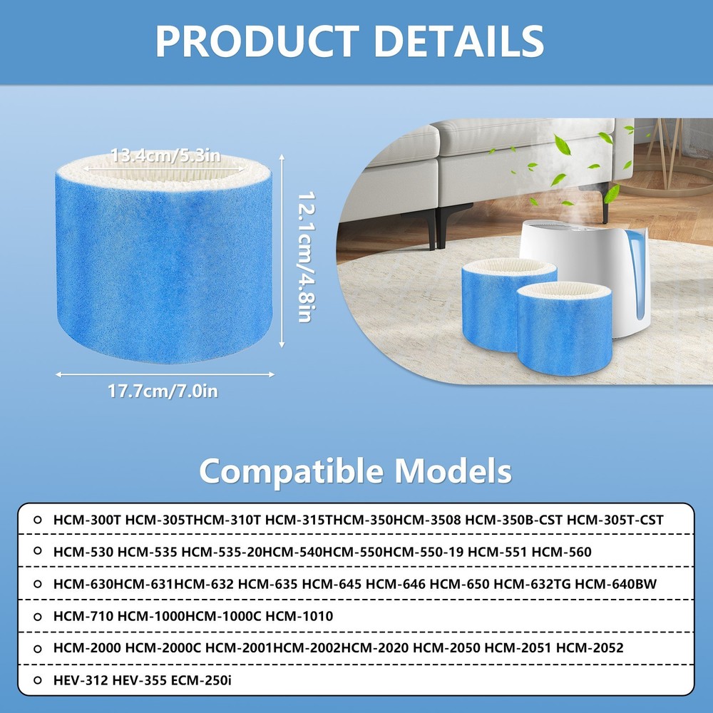 Compatible with Honeywell humidifiers HCM-300 Series : HCM-300T, HCM-305T, HCM-305T-CST, HCM-310T, HCM-315T, HCM-350, HCM-350B, HCM-350W, HCM-350B-CST, HCM-500 Series:HCM-530, HCM-535, HCM-535-20, HCM-540, HCM-550, HCM-550-19, HCM-551, HCM-560, HCM-600 Series:HCM-630, HCM-631, HCM-632, HCM-632TG, HCM-635, HCM-640BW, HCM-645, HCM-646, HCM-650 Also compatible with Honeywell humidifiers HEV-300 Series : HEV-312, HEV-355, HCM-700 Series: HCM-710, HCM-1000 Series:HCM-1000, HCM-1000C, HCM-1010 Enviracaire Series:ECM-250, HCM-2000 Series: HCM-2000C, HCM-2001, HCM-2002, HCM-2020, HCM-2050, HCM-2051, HCM-2052, Compare to humidifiers Filter A, HAC-504,HAC-504AW,HAC504V1 EXCELLENT PERFORMENCE - Enjoy moist air in winter with Funmit humidifier filter replacement for honeywell humidifier to ease uncomfortable symptoms caused by dry air. The absorbent mesh paper works with the humidifier to filter impurities in the water, preventing white powder from entering the indoor air and depositing on anything within sight, and keep your humidifier maintaining its peak performance COST-EFFECTIVE GOODS - Package includes 4 x Upgraded Blue Humidifier Filter Replacement for Honeywell HAC-504. Filter Dimensions: H: 7.0 x L 5.3 x W: 4.8 inches. Warm Tips: For best results, please fill the humidifier tank with distilled water. Excessive use of hard water will degrade filters and cause them to turn yellow prematurely. We recommend you to replace the compatible with honeywell filter HAC-504 every 2-3 months for optimal performance (depending upon your usage and environment) SHOP WITH CONFIDENCE - We stand by our products, and our customers are our focus as a business. If you have any quality problem, please contact Funmit customer service team in time, and we will try our best to solve your problems On Dec 10, 2025 at 19:00:38 PST, seller added the following information: