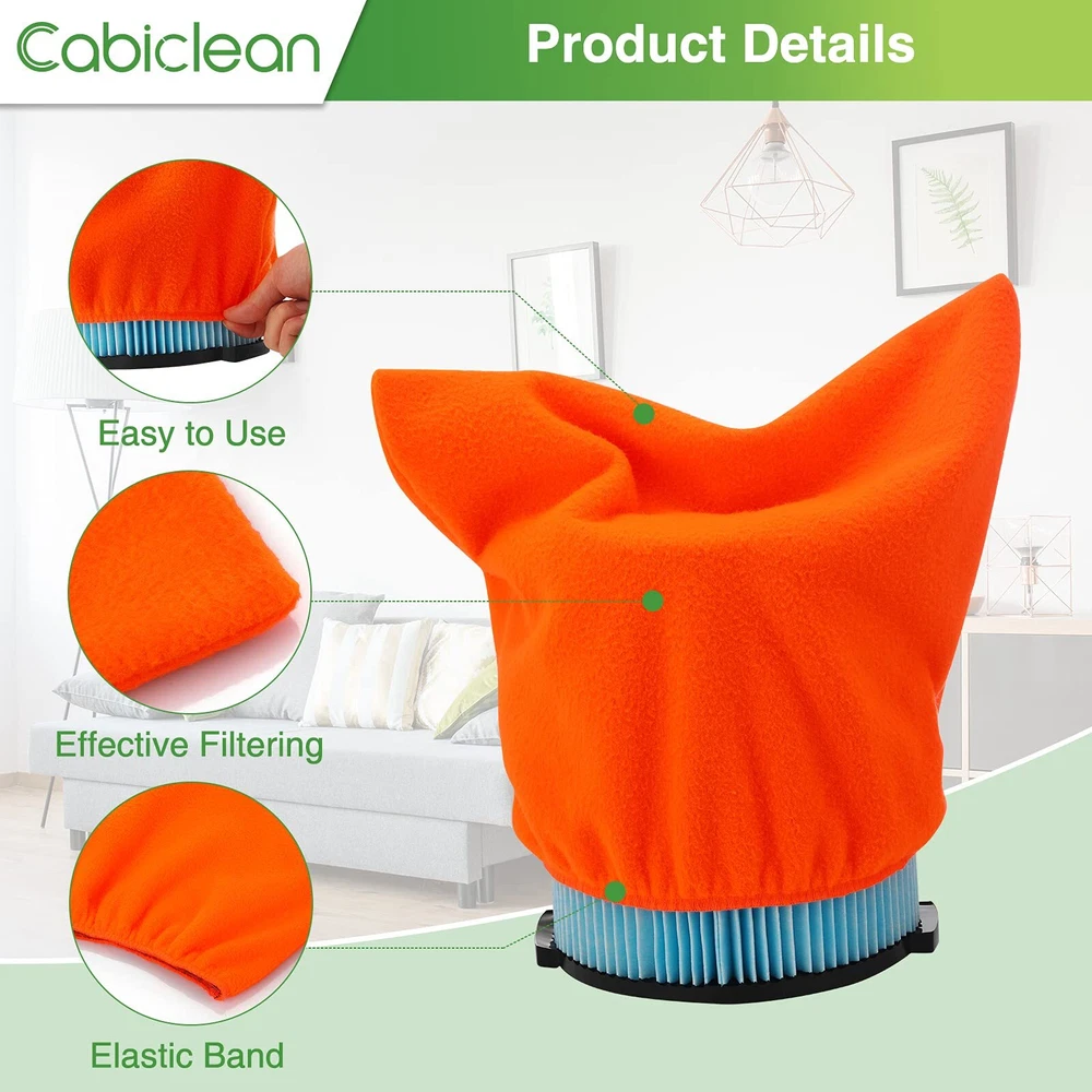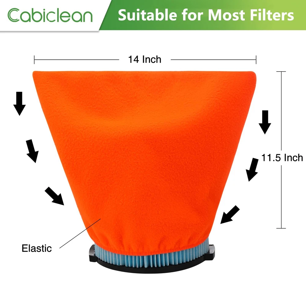 【Filter Retainer Cover】 Filter bag wrapped around your filter, effectively protect your vacuum's filter,without any loss of suction. 【Suitable for Most Filters】 The cloth filters cover sizes 8"Diameter x 11.5"L x 14"W(At Top),Fit filters that measure: 6-8" Diameter & 8-9" Tall. These pre filters fit 9 - 12 Gallon vacuums and are with VF4000,VF5000,DXVC6912 and 917816. 【Save You Money & Time】 Having to constantly toss your wet/dry filter cartridge because it's clogged with dust and debris is not only a pain but will also put a dent in your wallet. This pre-filter will help you get a lot more mileage out of every filter, saving you a lot of money. 【Package】 4 X Orange Wet Dry Vac Dust Collector Bags (NOTE: Package included 4 filter bags, Vac filter not included.) ⚠️【Note】 Any use of the Vac brand name or model designation for this product are made solely for purposes of demonstrating compatibility. 【Effectively Protect Vacuum's Filter】These Vac Filter Cover fit 9 - 12 Gallon vacuums and are with Vac filter part number VF4000, VF5000, DXVC6912 and 917816. Use the vac filter cover to perfectly protect the vacuums, And more effective filtering of dust, dirt, chips, debris and pet fur 【Filters Bag Size】8"Diameter x 11.5"L x 14"W(At Top),Fit filters that measure: 6-8" Diameter & 8-9" Tall. The dust collector filters has stretchy at the open,each comes equipped with an elastic band to keep them secured around the filter. (Before buying please make sure your vacuum's filters fit size of the filter vacuum cover) 【Washable & Reusable】These filter retainer cover are made of the quality polyester soft fabric, The pre filter bags can be machine washable, Easy to install and remove, reusable and green, durable 【Save You Time and Money】As time goes by, the performance of the vacuum cleaner will fade,so you have to frequently clean your vacuum or replace the vac filters. Using our filter vacuum cleaner bags will extend the life of your filter.it is easy to clean and saves filters,saves you time and money 【Buy with Confidence】We provide professional service. Any questions, please feel free to us, we are committed to offer the top quality products and promise high quality