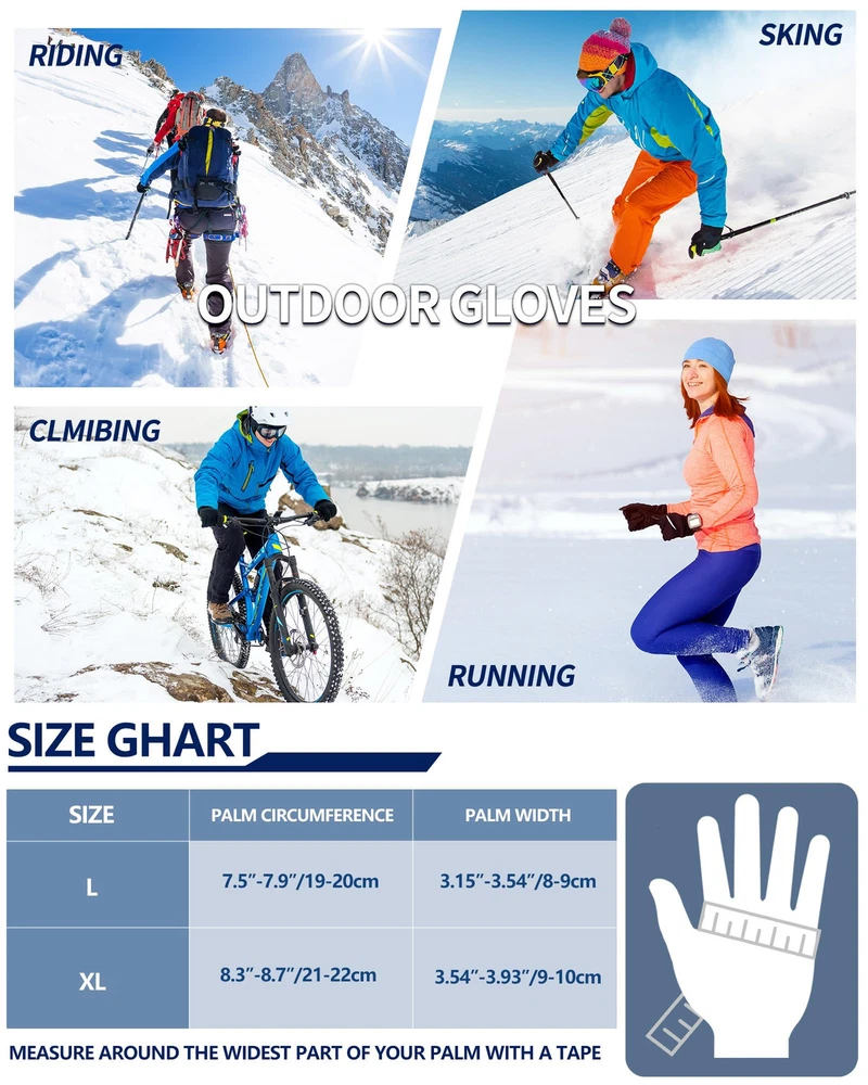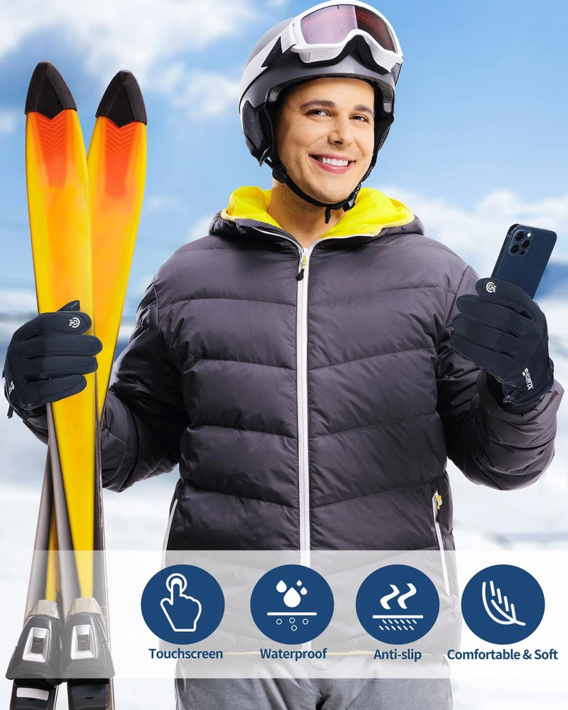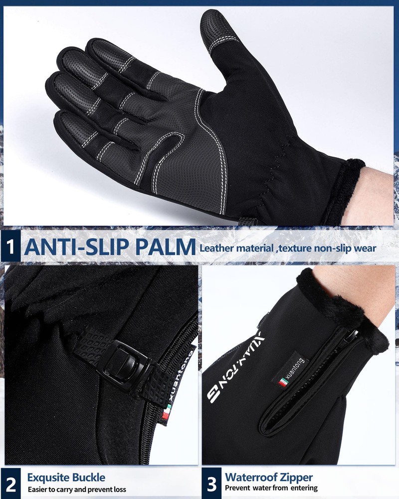Winter Gloves Set: you will receive 4 pairs of winter waterproof gloves, available in different colors and sizes; These cold weather gloves are suitable for keeping your hands warm during outdoor sports activities in winter Touch Screen Gloves: the all finger touchscreen gloves are made of non slip PU conductive leather, all fingers have touch screen function, convenient to use a mobile phone or other touch screen device, suitable for texting and typing in the cold winter without taking off the gloves Waterproof Material: the touchscreen gloves surface is made of high density nylon fabric, and the inner layer is a composite waterproof coating, which has better waterproof and windproof effect; The windproof gloves are breathable, and the fleece lining keeps your hands warm in winter Convenient Design: the waterproof winter gloves are designed with elastic cuffs and adjustable zippers, convenient to wear and take off; The anti lost buckle design prevents the loss and keeps your gloves paired Winter Sports Gloves: these winter gloves are ideal for winter outdoor activities, such as cycling, driving, hiking, running, skiing, mountaineering, riding, snowmobiling and other winter outdoor sports; The snow gloves help your fingers move flexibility while doing athletic sports or working