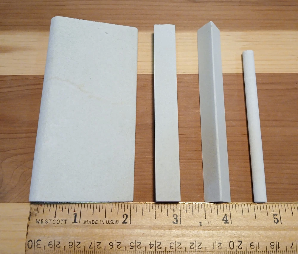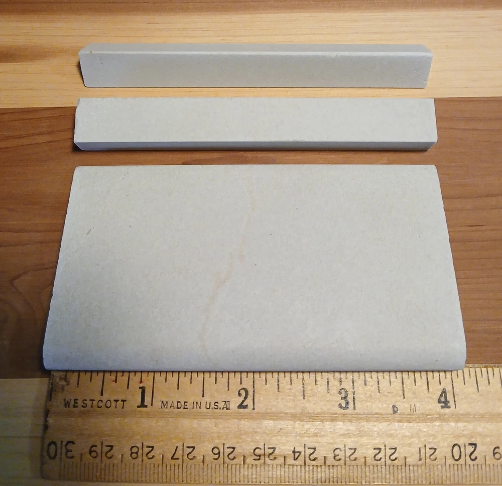 4 Piece Natural Hard Arkansas Novaculite File Set, Slip Stone, Triangle, Square, Round Whetstone/Oilstone/File. Wood working Files These hard Arkansas files are found only in and around Hot Springs, Ark. Hard Arkansas files are used in wood working, gunsmithing and knife sharpening. Made of novaculite, it is the finest natural abrasive stone available. The slip stone/file measures appx. 4" x 1/2" on the round edge and tapers down to appx. 1/8" on the small edge. The triangle file measures appx. 4" x 1/2" The square file measures appx. 4" x 1/2" The round file measures appx. 3 3/8" x 1/4" Please see photos for the actual set you will receive. I will gladly combine shipping for multiple purchases. Returns accepted.