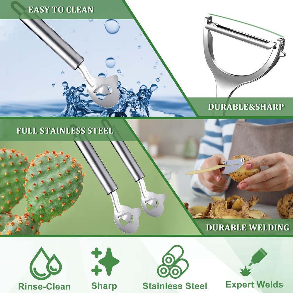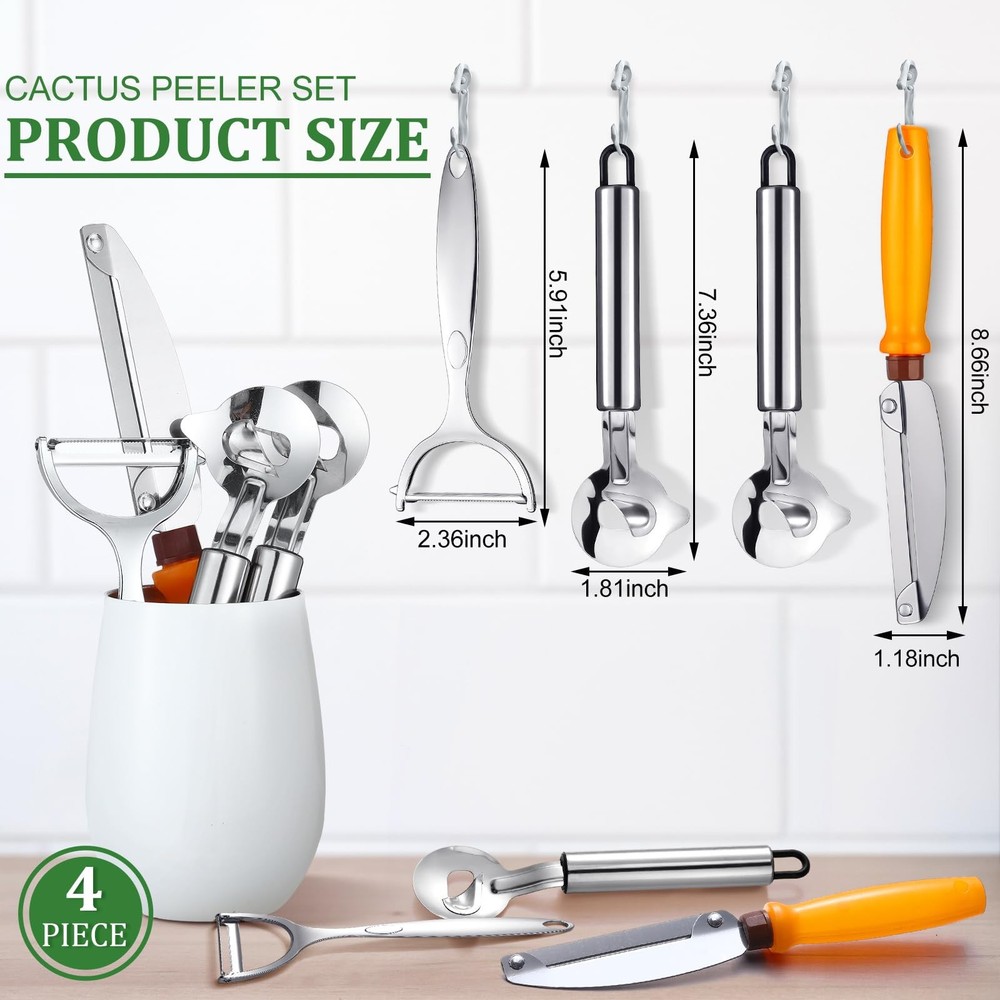 4 Pcs Cactus Peeler Tools Set, Peeler Spoon, Stainless Steel Cactus Paring Kn...