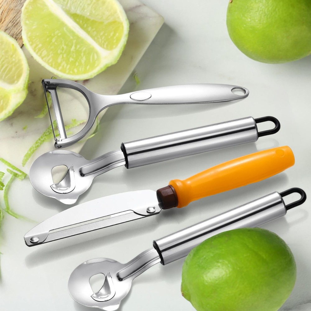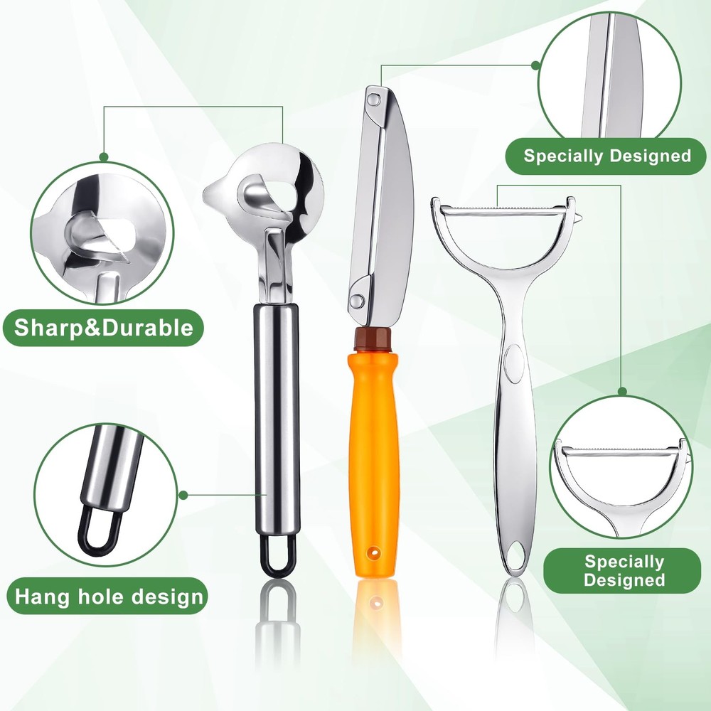 Features: Stylish and practical design: Our silver cactus peeler set combines functionality with style, complementing any kitchen decoration. The sleek, professional look paired with practical features makes it a valuable addition to modern kitchens, offering both aesthetic appeal and unmatched efficiency in various culinary tasks. Multipurpose kitchen tool: The cactus peeler set is a practical choice for increasing safety and convenience in your kitchen. Whether for home cooking or professional use in hotels and restaurants, these tools provide a multipurpose solution for efficient food preparation, catering to the diverse needs of any kitchen. Specifications: Material: stainless steel Color: silver, orange Size: Peeler: 5.91 inches long, 2.36 inches wide Peeler knife: 8.66 inches long, 1.1 inches wide Peeler spoon: 7.36 inches long, 1.81 inches wide Package includes: 1 x Peeler 1 x Peeler knife 2 x Peeler spoon Notes: Manual measurement, please allow slight errors on size. The color may exist a slight difference due to different screen displays. Versatile Culinary Companion: introducing our comprehensive cactus peeler set, featuring 1 peeler, 1 cactus peeler knife, and 2 cactus peeler spoons; Designed to meet your diverse kitchen needs, this set is nice for effortlessly peeling cactus skin, slicing dough, and cutting pie crusts, making it an essential tool for every culinary enthusiast Efficient and Safe Cutting: our cactus peeler features grooved blade designs for precise, efficient cutting and slicing; This ensures you enjoy a safe, convenient cooking experience that maximizes efficiency while minimizing the probability of hand injuries, making it a reliable tool for safe and precise kitchen tasks Reliable Material and Non Slip Handle Design: our cactus peeler is made of stainless steel, which is sturdy and durable; The non slip handle ensures a firm grip and minimizes hand fatigue even after long term use; This practical design is nice for chefs and home cooks, giving you comfort when preparing food Convenient Storage and Maintenance: each tool in the cactus peeler set is carefully designed with a hanging hole for easy storage; The stainless steel material can be cleaned quickly and easily with water or a damp cloth without leaving any stains; This ensures your tools remain hygienic and long lasting; Pointed items are included, please be careful when using Ideal Gift for Cooking Aficionados: this exquisite cactus peeler tool set makes a thoughtful gift for those who adore cooking; It's an ideal present that promises enhanced efficiency and precision in meal preparation, catered specifically to chefs and cooking enthusiasts looking for reliable and versatile kitchen tools